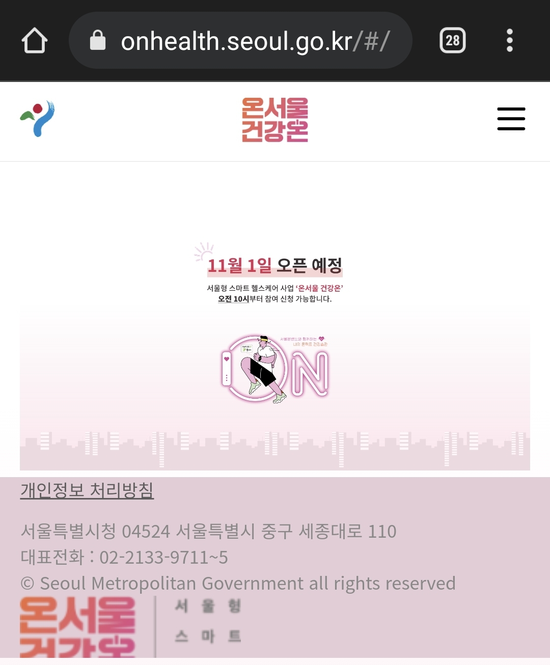 [아래 사진]은 온서울 건강온 홈페이지입니다. 10월 31일 기준 아직 오픈이 안됐네요.