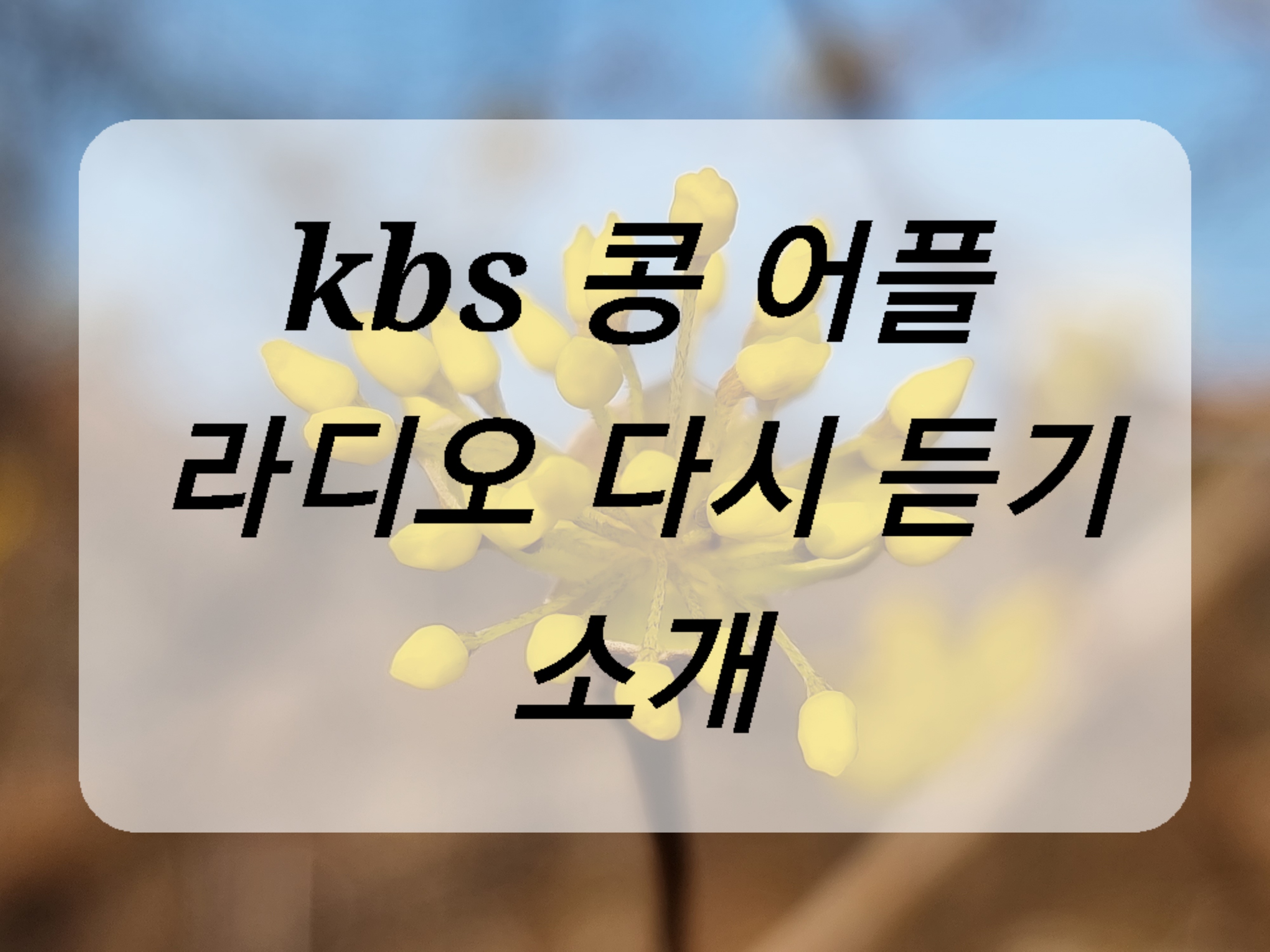 오늘은 kbs 콩 어플에서 맘에 드는 라디오 프로그램 "다시 듣기" 방법에 대해 소개합니다.