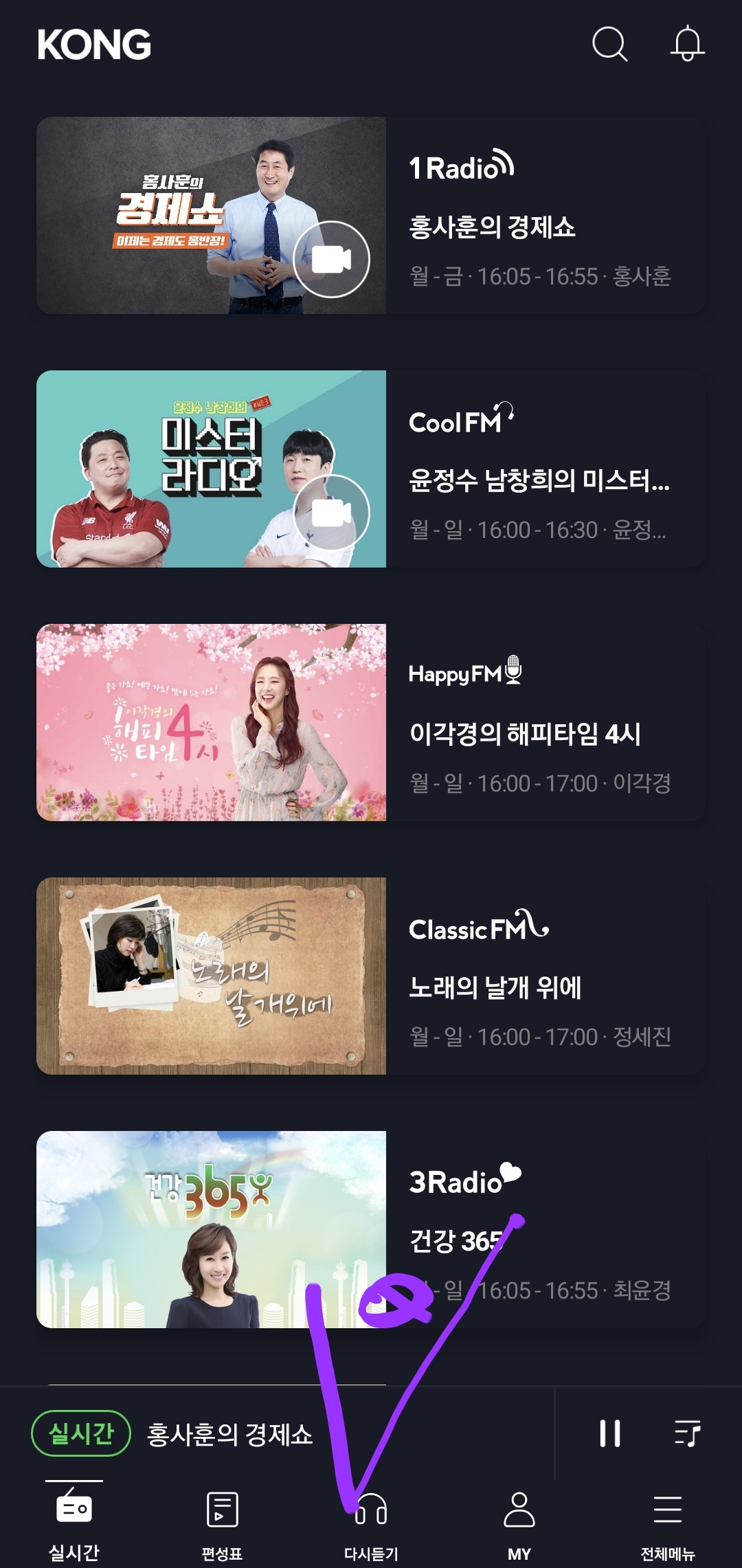 KBS 라디오 어플 KONG(콩) 다시 듣기 방법 소개
