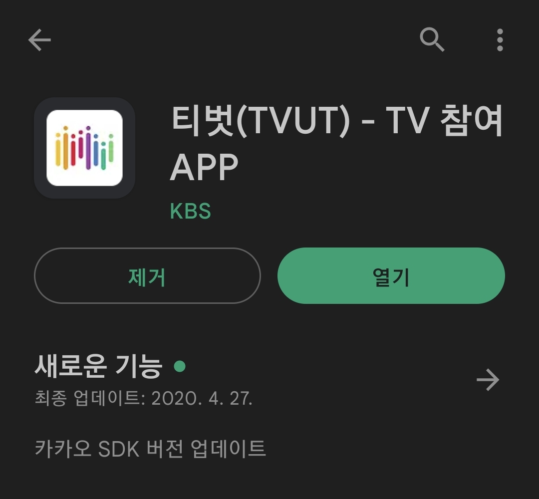 안드로이드 앱 스토어인 플레이스토어에 따르면 이 티벗(TVUT)은 TV 참여 APP으로 표현하면서 "TV를 즐기는 또 하나의 방법"이라고 소개하고 있습니다. 그리고 이 앱은 "스마트폰과 함께 TV 방송을 보는 신개념 방송 APP"이라고도 말하고 있습니다. 주요 기능은 생방송 투표, 내 사연을 들려줘, 다양한 이벤트 등입니다.