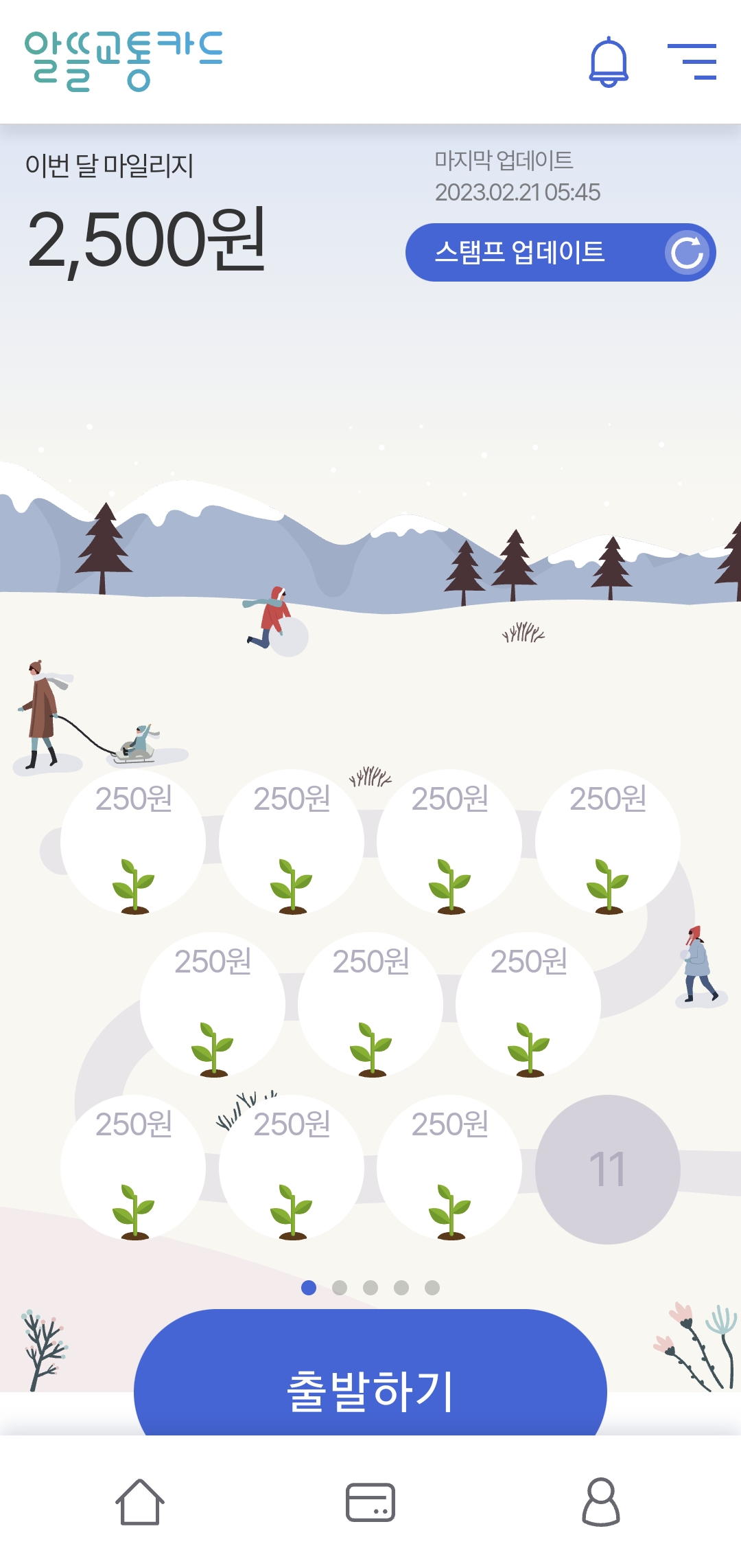 이 앱은 알뜰교통카드를 이용하기 전 15분간의 걸음수로 마일리지를 적립합니다. 아이폰은 건강과 연동, 안드로이드는 신체활동과 연동되니 선택 권한을 꼭 허용해 주세요. 버전은 IOS 12, 안드로이드 9 버전 이상 지원합니다.