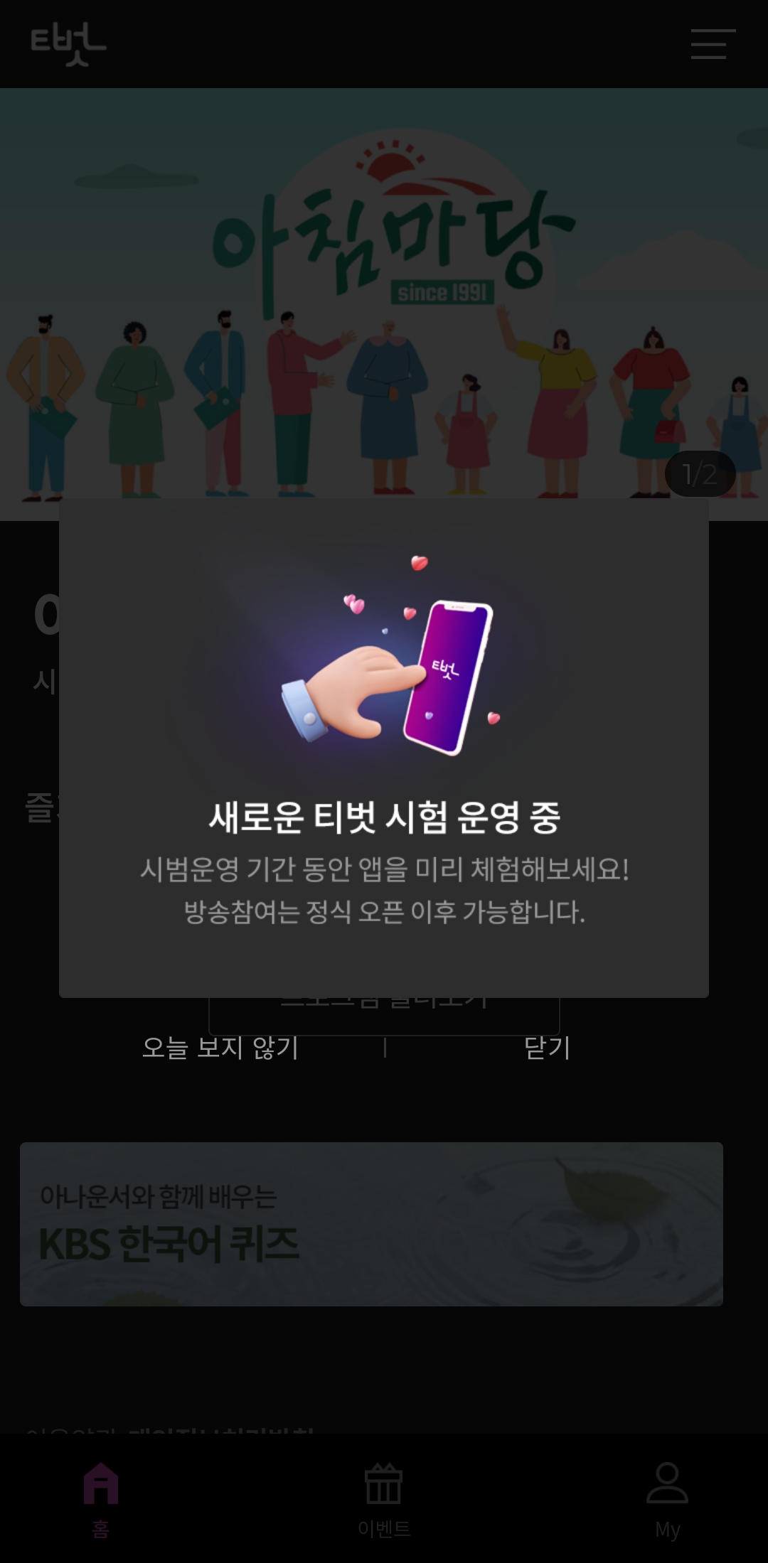 2022.02.05 - KBS 생방송 TV 참여 어플 '티벗'이 아침마당 질문과 사연 기다려요.
