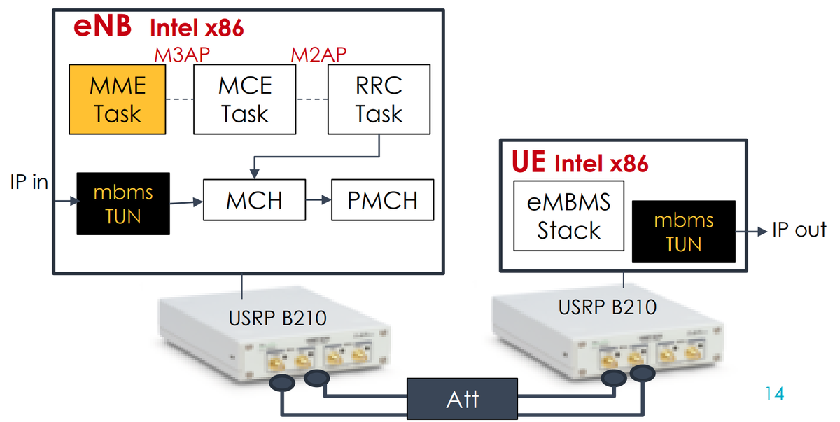 OpenAirInterface5g 이니셔티브는 UHD/USRP 기반 SDR에서 실행되는 소프트웨어를 개발했습니다. 이에 대해 제가 가지고 있는 마지막 정보는 3GPP 릴리스 14 기반 구성에 대한 2019년 정보입니다. 자세한 내용은 Vicomtech의 Javier Morgade가 진행한 " OpenAirInterface5G를 사용한 FeMBMS/eMBMS E2E 프로토타이핑 " 프레젠테이션에서 확인할 수 있습니다.