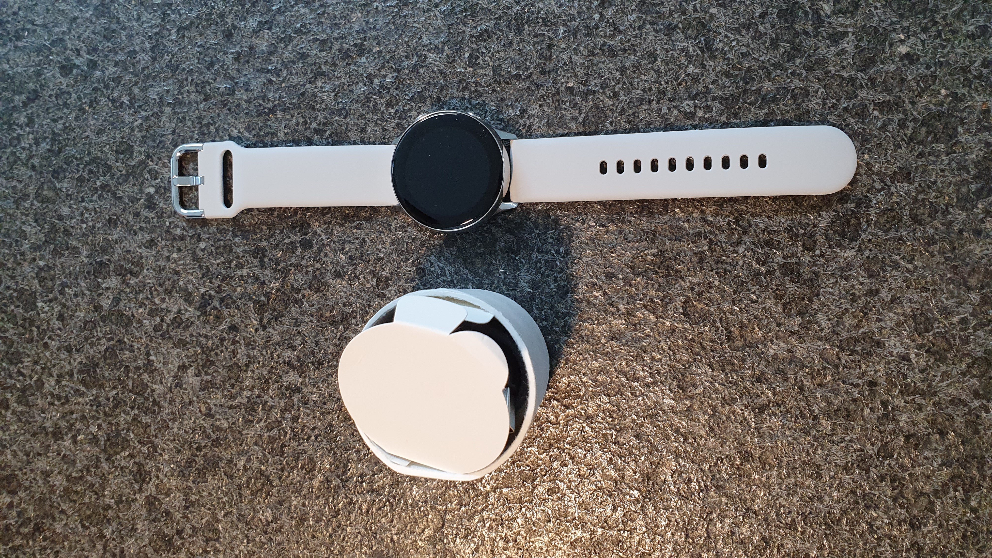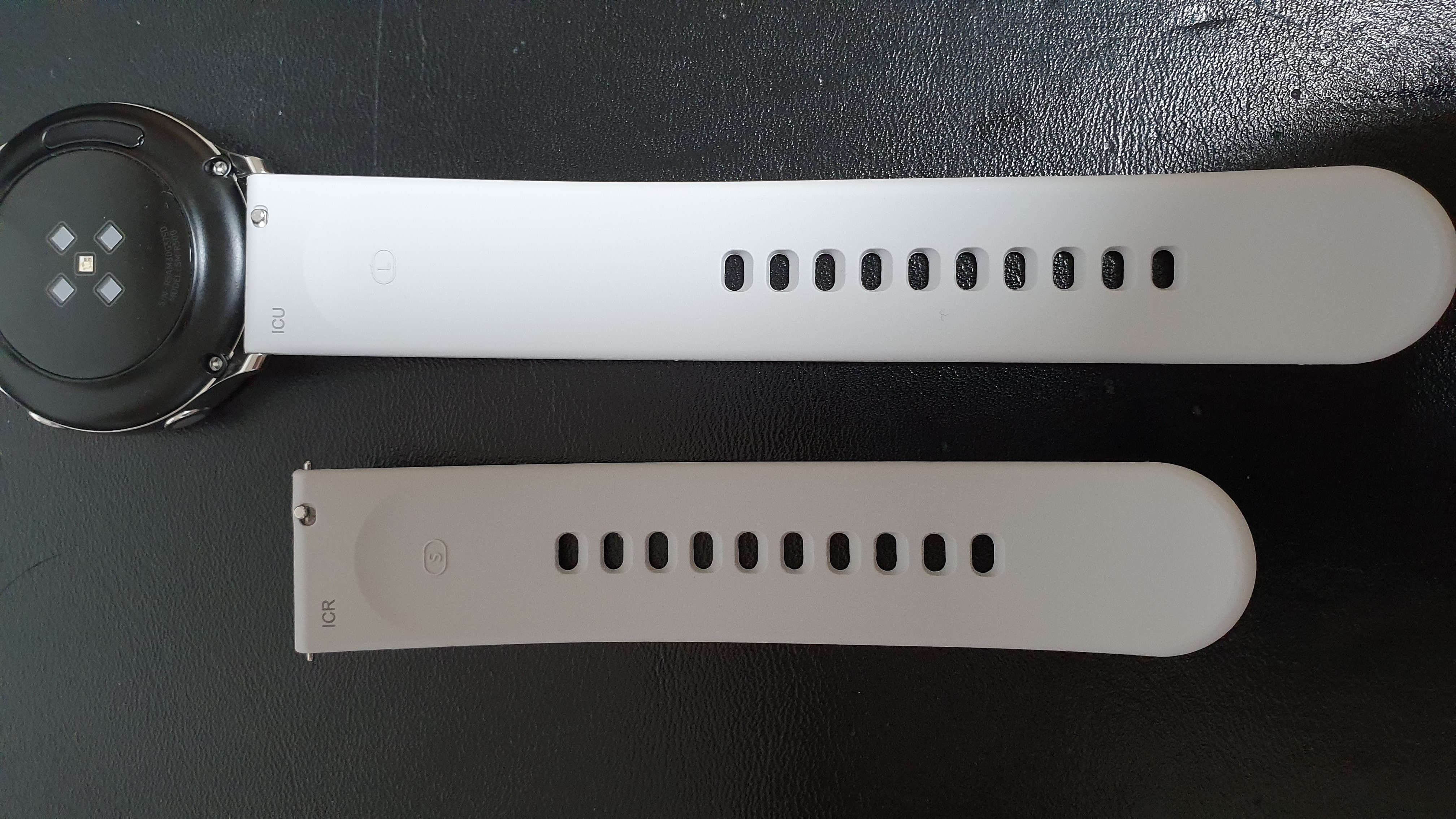 갤럭시 워치 액티브 (SM-R500) 밴드는 큰것과 작은거 2개로 그중 하나는 구성품으로 별도로 제공되니 손목 환경 맞춰 착용하시기 바랍니다.