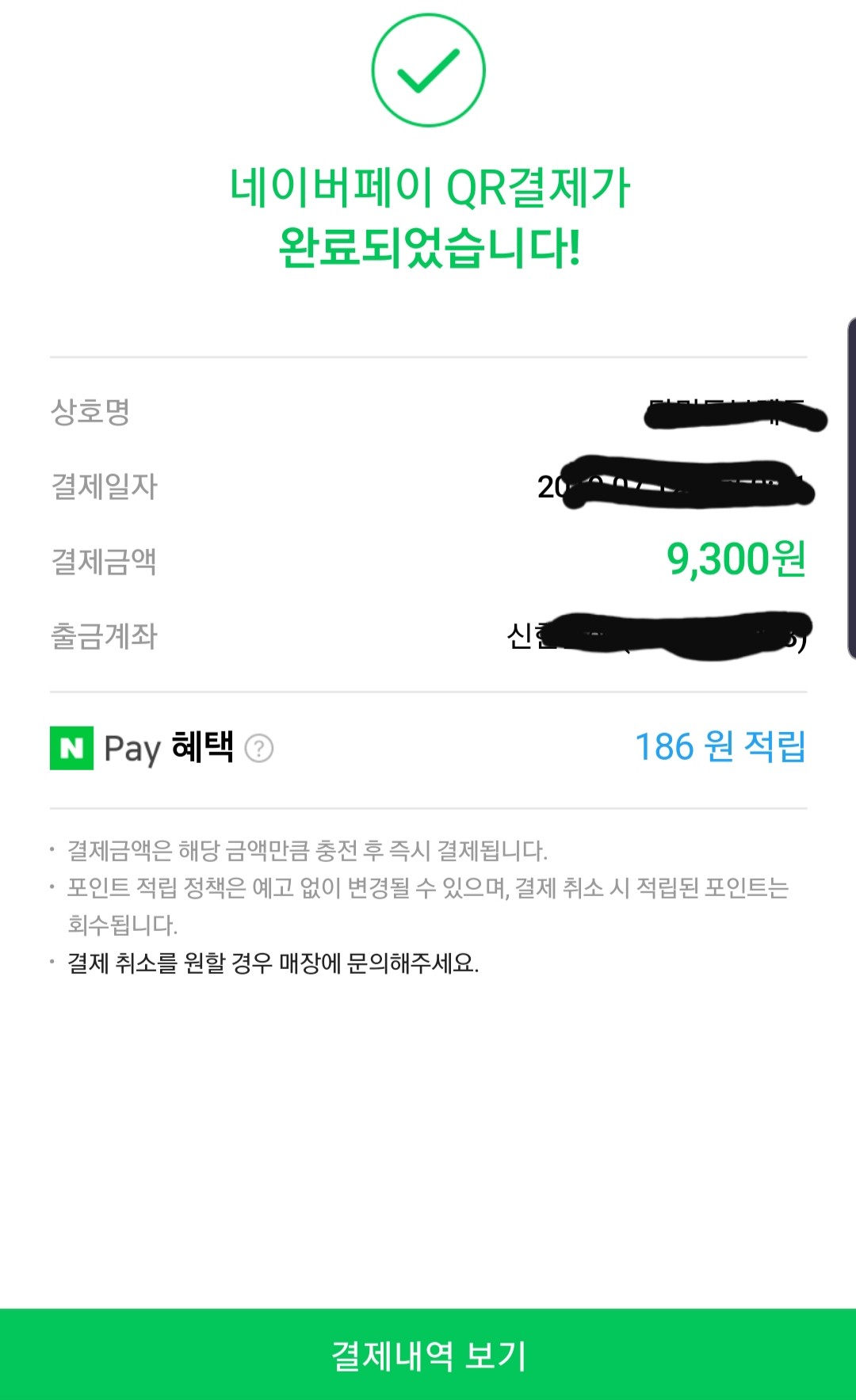 이날은 "네이버페이 QR코드"로 제로페이를 결제 했어요. 왜냐하면 2% 적립을 해준다고 해서지요.