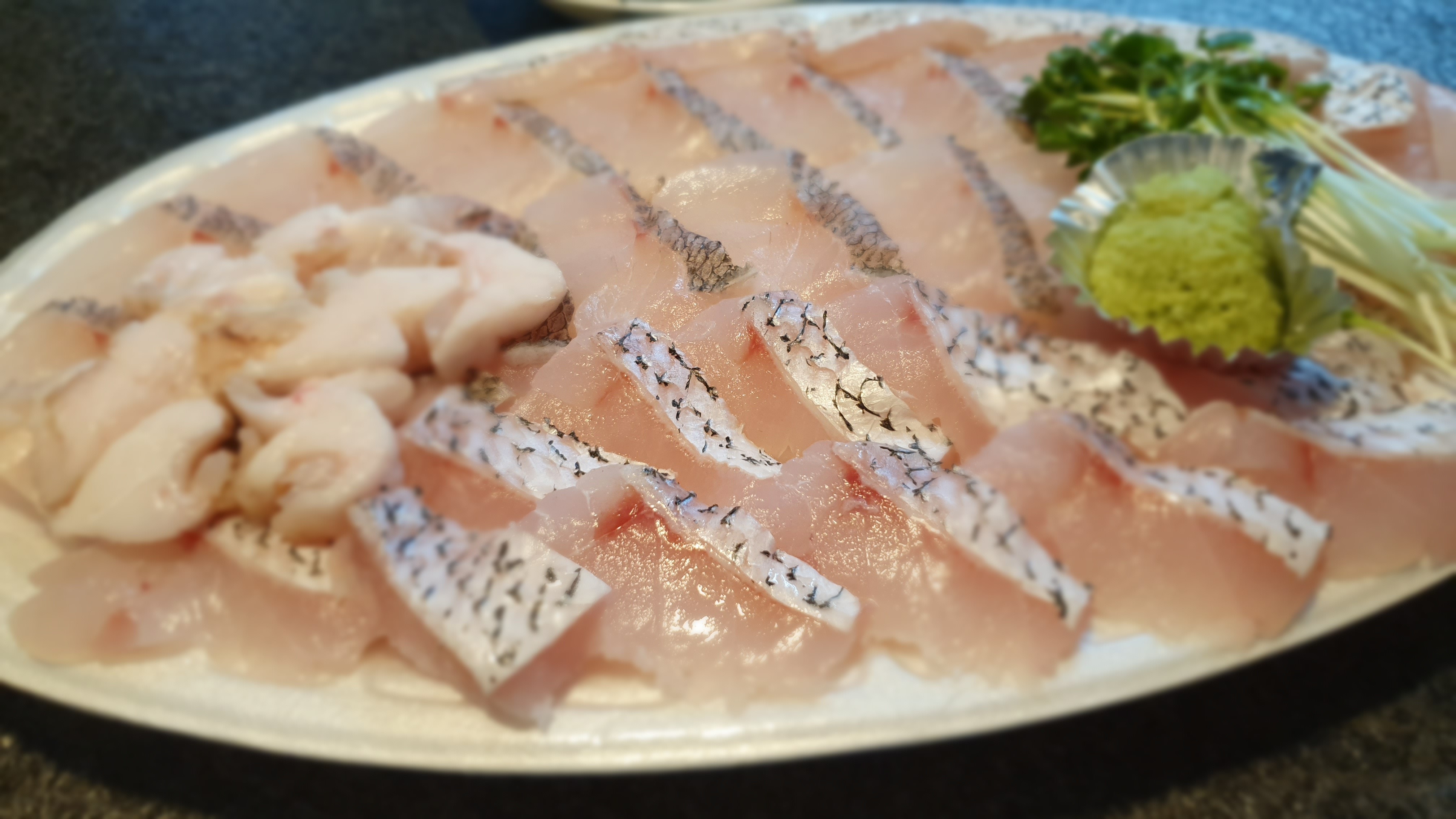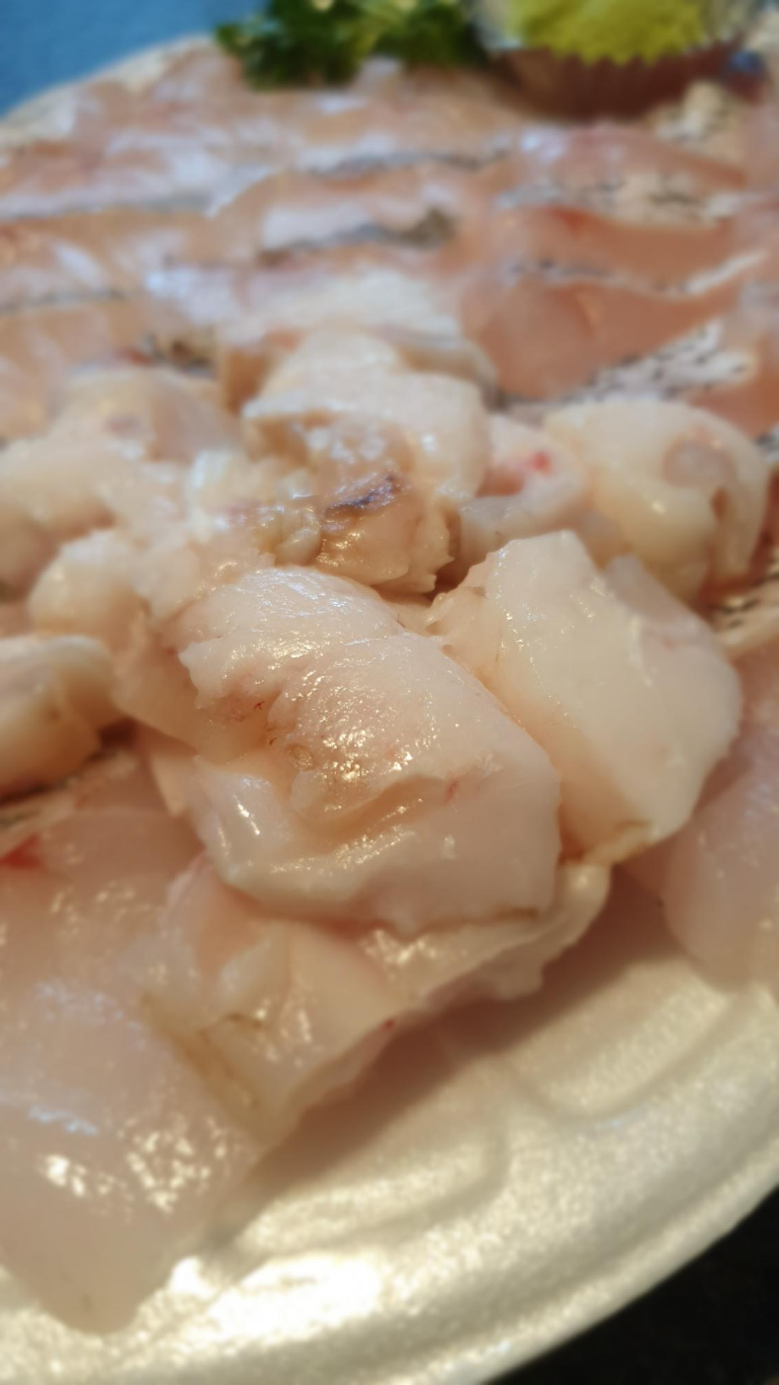 민어회를 고추냉이와 함께 촬영했습니다. 회 식감은 신선도 측면에서 뭔가 2% 부족한 그런 맛으로 제스타 일은 아니었습니다.