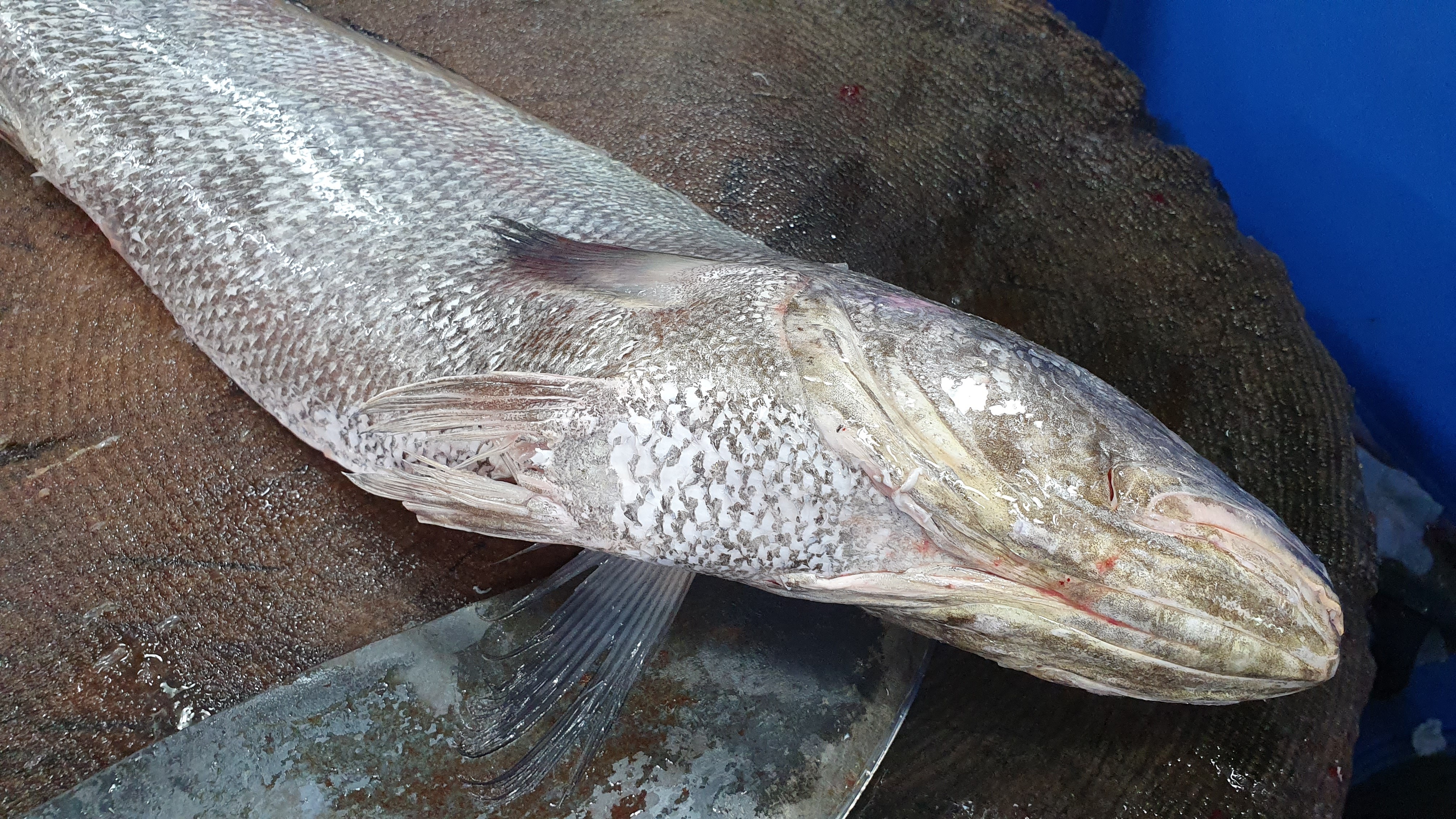 민어 시세는 7만원/kg으로 가격이 후덜덜하네요. 전체 무게는 1.8kg 정도 나왔던 거 같네요. 그리고 생긴 것은 아래 사진과 같습니다. 태어나서 이렇게 가까이서 본 것은 이번이 처음입니다. 이게 뭐가 그리 좋길래 이렇게 고가이면서 난리인지 모르겠어요..