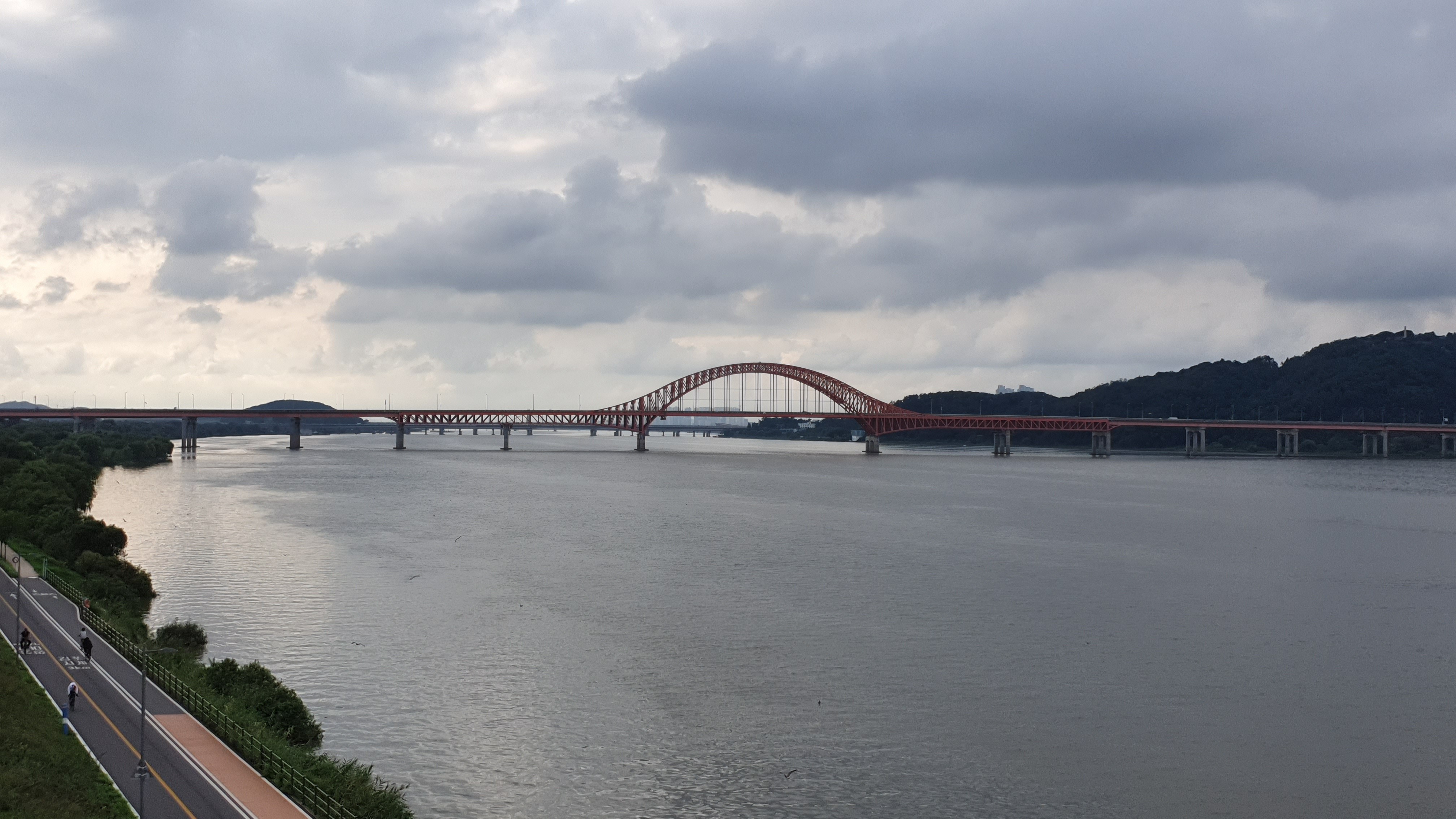 "한강연결보행교"에서 본 올림픽대로 뷰입니다. 이 사진은 스마트폰 갤럭신10 5G로 촬영했는데요. 모드는 광각입니다. 자동차 번호판이 나오면 가려야 되고 해서 광각으로 촬영했는데요. 느낌이 살아 있네요. 저녁에 장노출 사진이나 노을 등도 예쁠 것 같습니다.