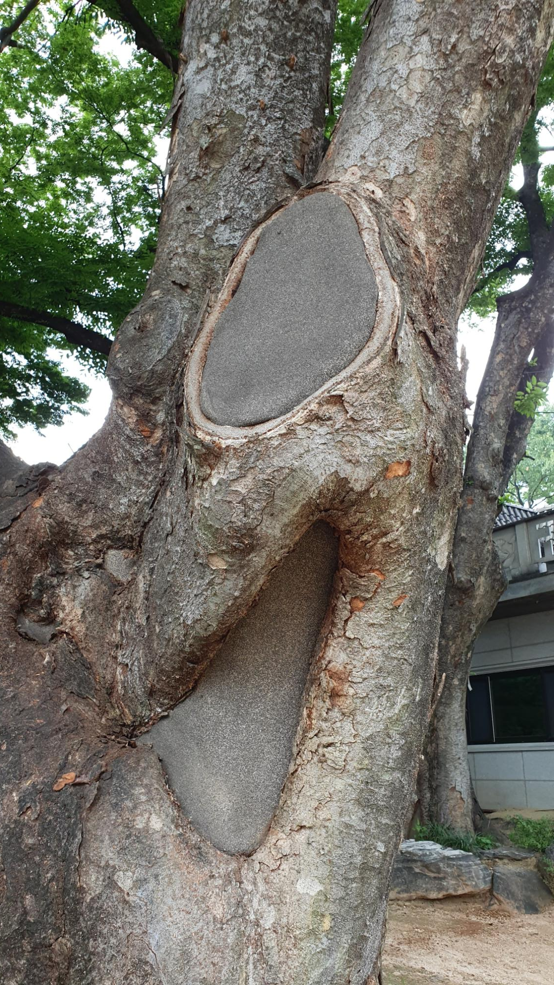 200년을 살아온 이 나무들에게도 애환은 있습니다. 없을리가 없지요. 아래사진처럼 외과수술흔적이 있습니다.