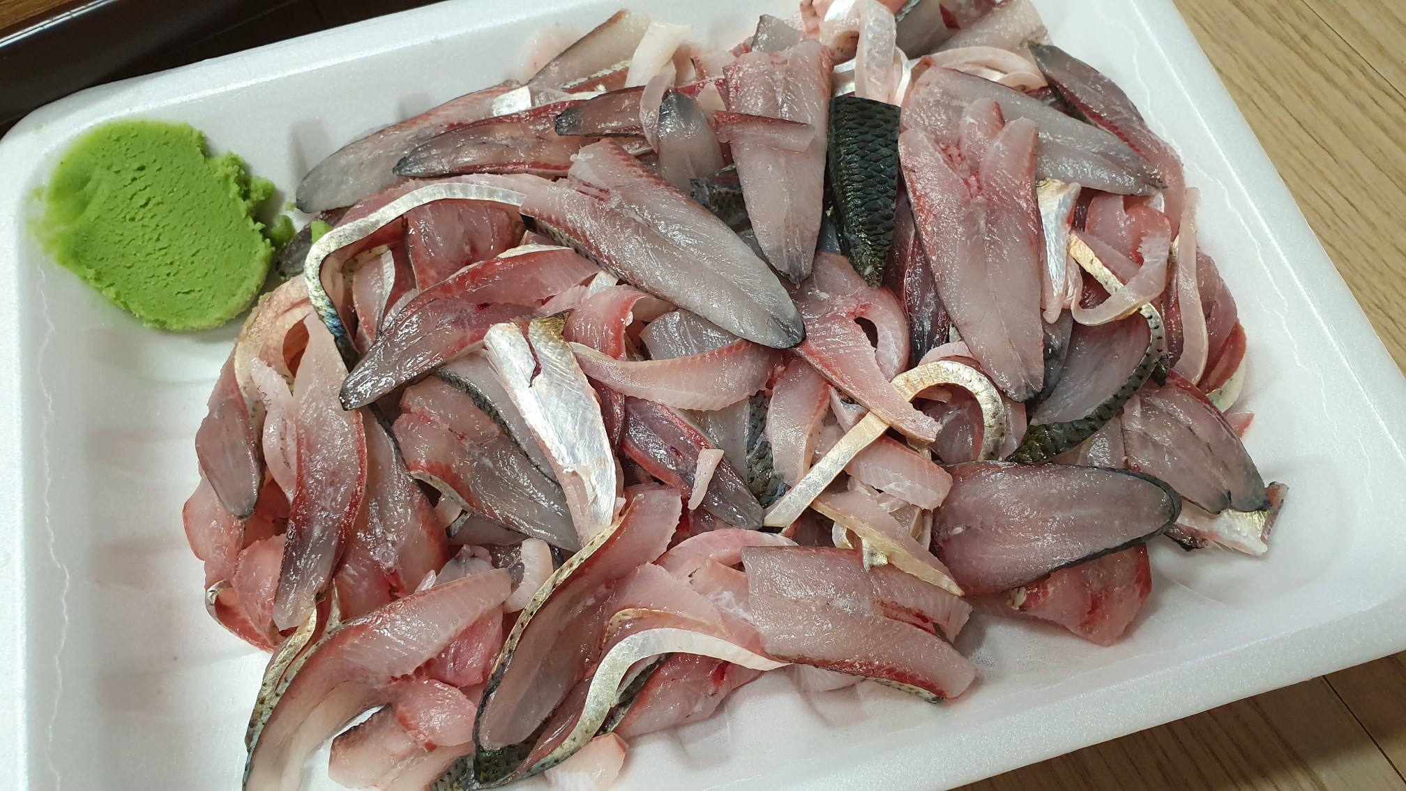 집에서 깻잎 위에 초고추장+전어+매콤한 고추로 쌈 한 후에 맛있게 먹어줍니다. 식감은 제철 해산물이라 그런지 고소하더군요.