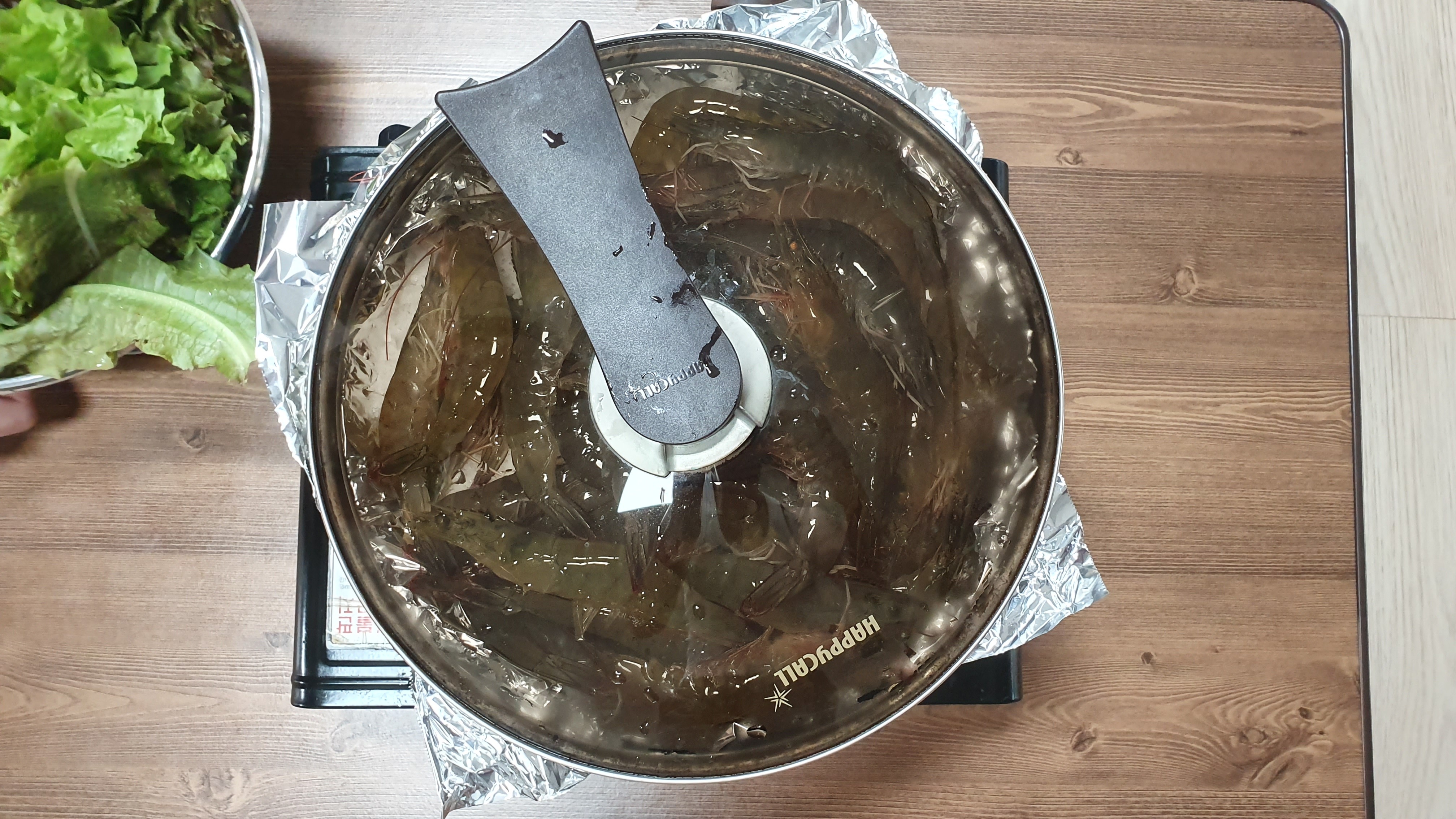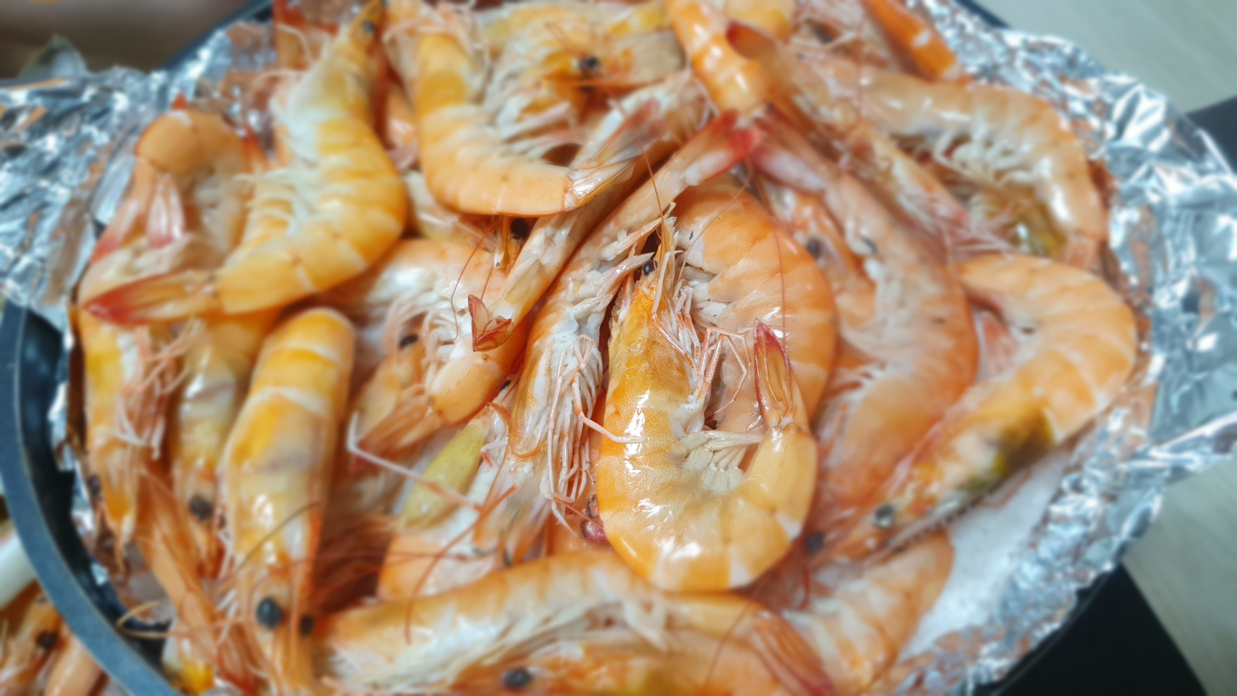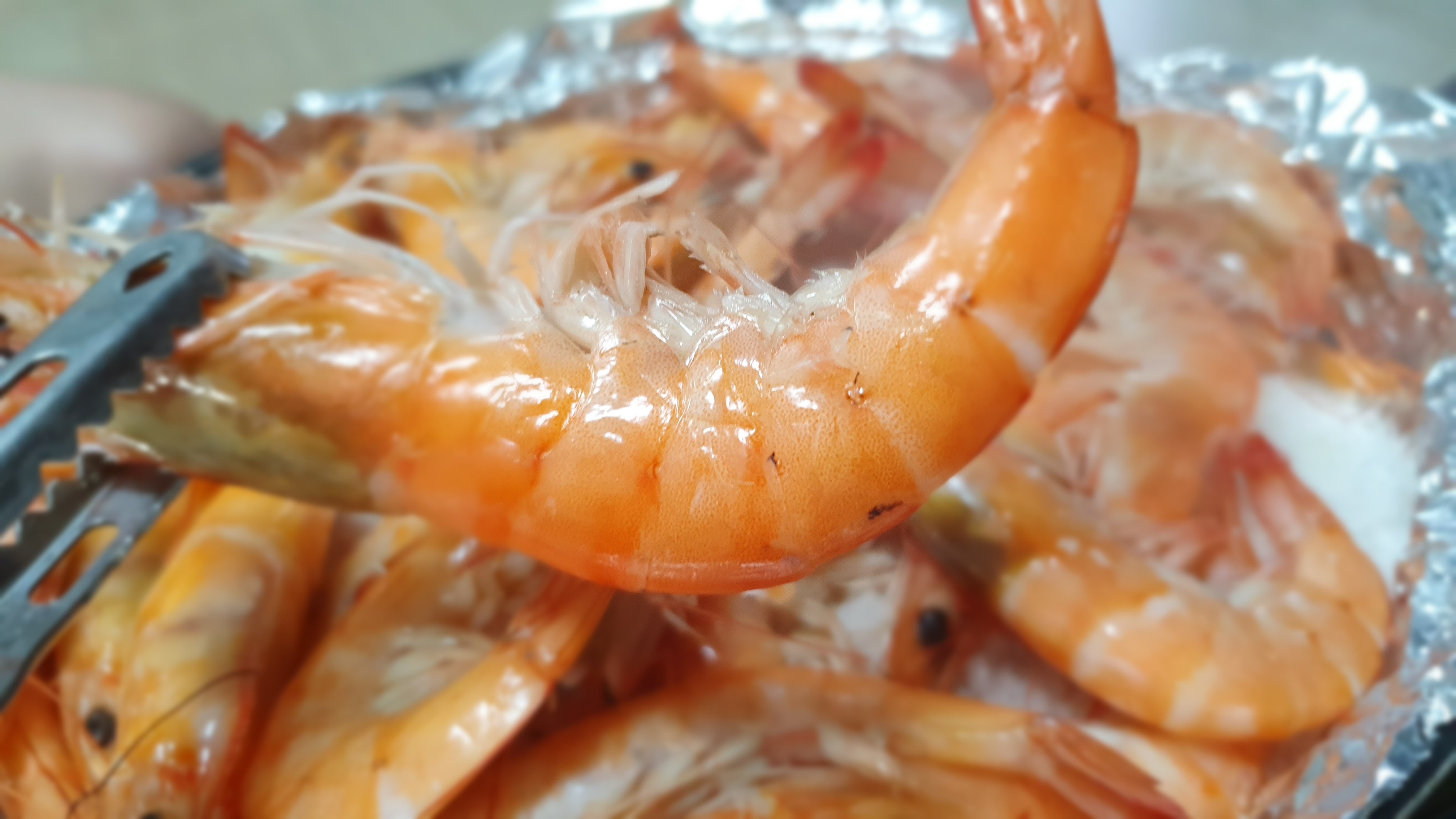 수산물시장에서 산 새우를 집에서 소금구이로 맛있게 먹었습니다.