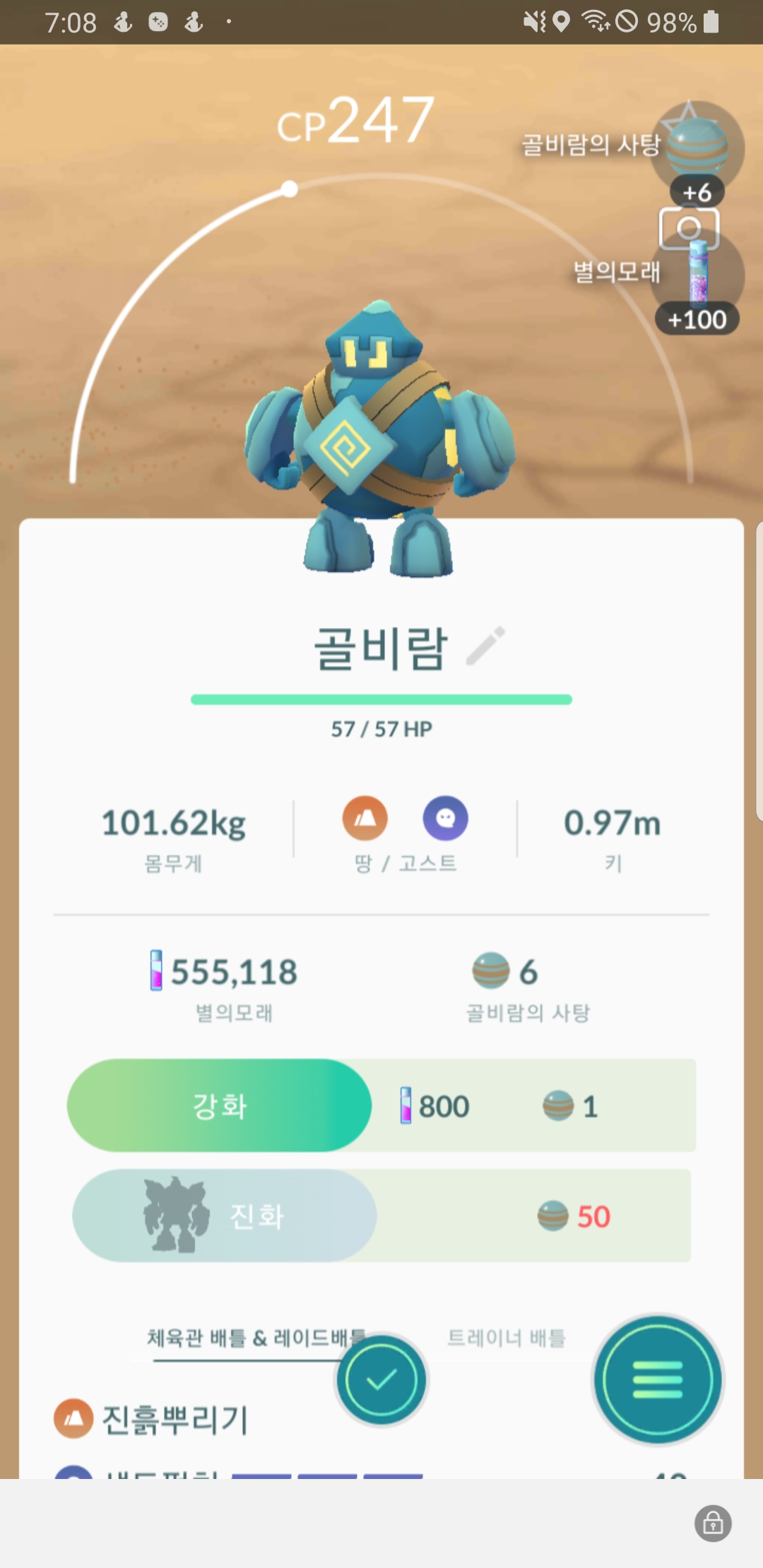[아래사진]은 도감번호 622번의 골비람 포켓몬입니다. 골렘포켓몬으로 분류되며 고대인이 부하로 삼기 위해 점토를 빚어서 만들었다고 하나 에너지원은 불명확합니다. 강서성결교회인근에서 잡은것으로 기억합니다.