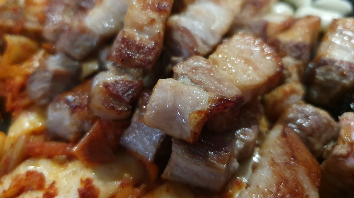 [아래사진]은 먹기좋게 잘라진 삼겹살의 클로즈업입니다. 저희가 잘랐으면 이렇게 이쁜모습이 나오질 않지요. 식당관계자의 손길이 묻어 있습니다.