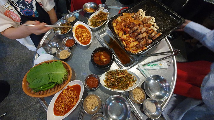 개인적인 생각은 "맛은 기본이고, 식당 관계자분들은 상호 커뮤니케이션을 통해 손님들의 요구를 한발 앞서 챙겨주는 그런 서비스 때문이다."라고 말씀드릴수 있겠네요. 예를 들면 이런 것이지요. 야채 그릇에 바닥이 보이기 전에 식당 관계자분은 미리 리필을 해 줍니다. 그리고 고기가 어느 정도 익어 손님이 가위를 잡으려고 할 때 어디선가 나타나 고기를 다 잘라주고 갑니다.
