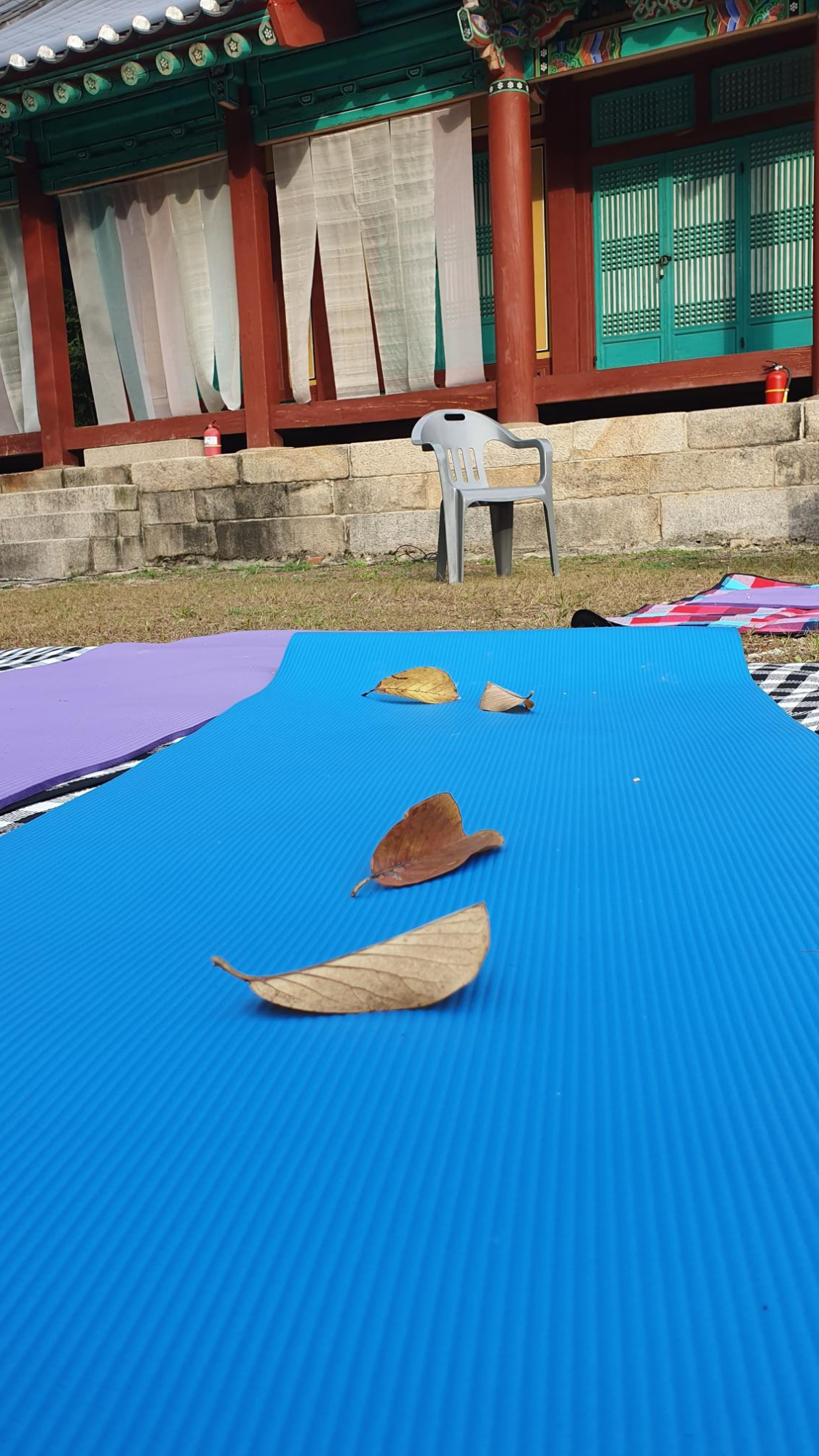 온온사 앞마당에 돗자리와 요가 시 사용하는 패드 등이 깔려 있는데요. 이곳에서 정확하게 무엇을 하는지는 제가 보질 못해서 모르겠네요.
