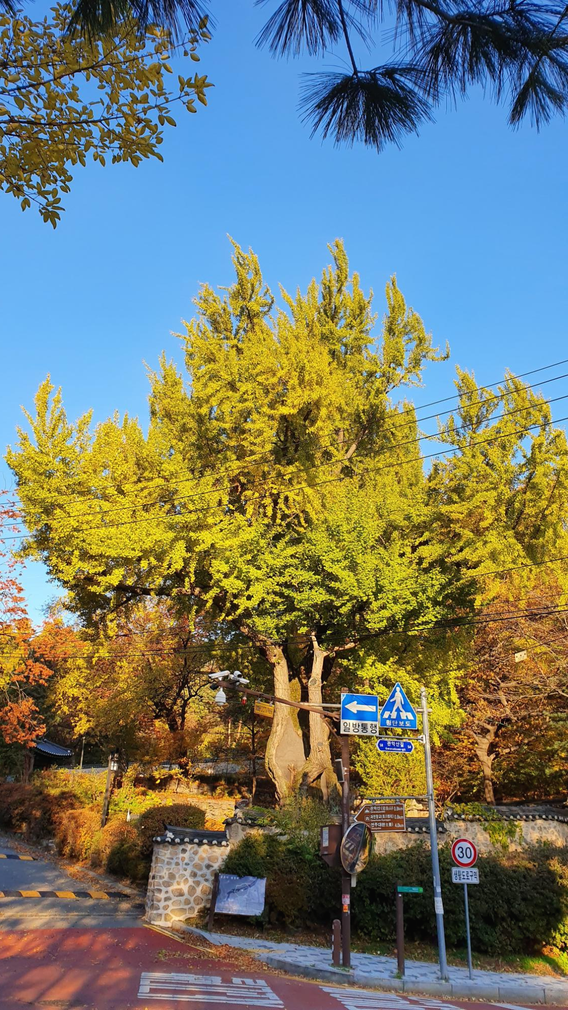 옆에 있는 다른 은행나무는 노랗게 노랗게 물들어 낙엽 되고 있는 것과는