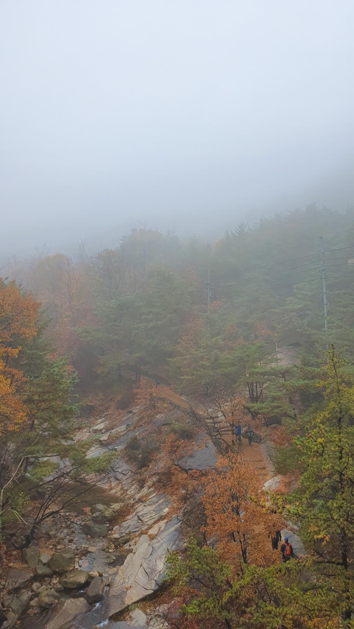 산아래는 [아래 사진]과 같이 안개가 자욱해 가시거리가 매우 짧았는데요.