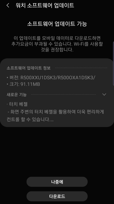 [웨어러블] 소프트웨어 업데이트 공지