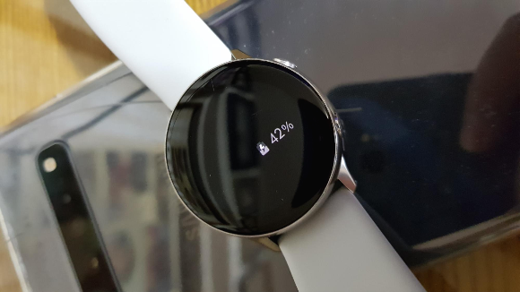 새로운 기능에 "충전 중 AOD 화면을 보다 알기 쉽게 개선했습니다."라고 설명하는데요. [아래 사진]은 무선충전 중 갤럭시 워치 액티브 디스플레이 사진인데요. 과거와 뭐가 달라졌는지 잘 모르겠어요.