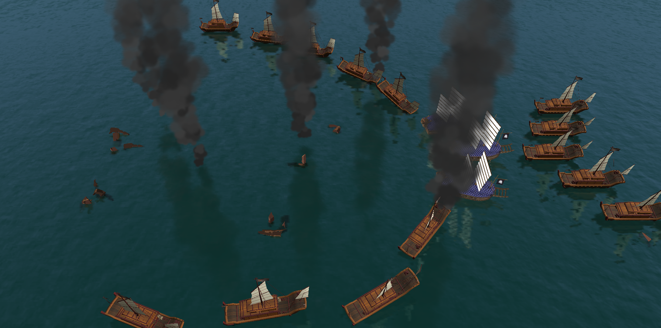 전투 장면인데요. 처참하게 침몰하는 일본 군대의 모습입니다.