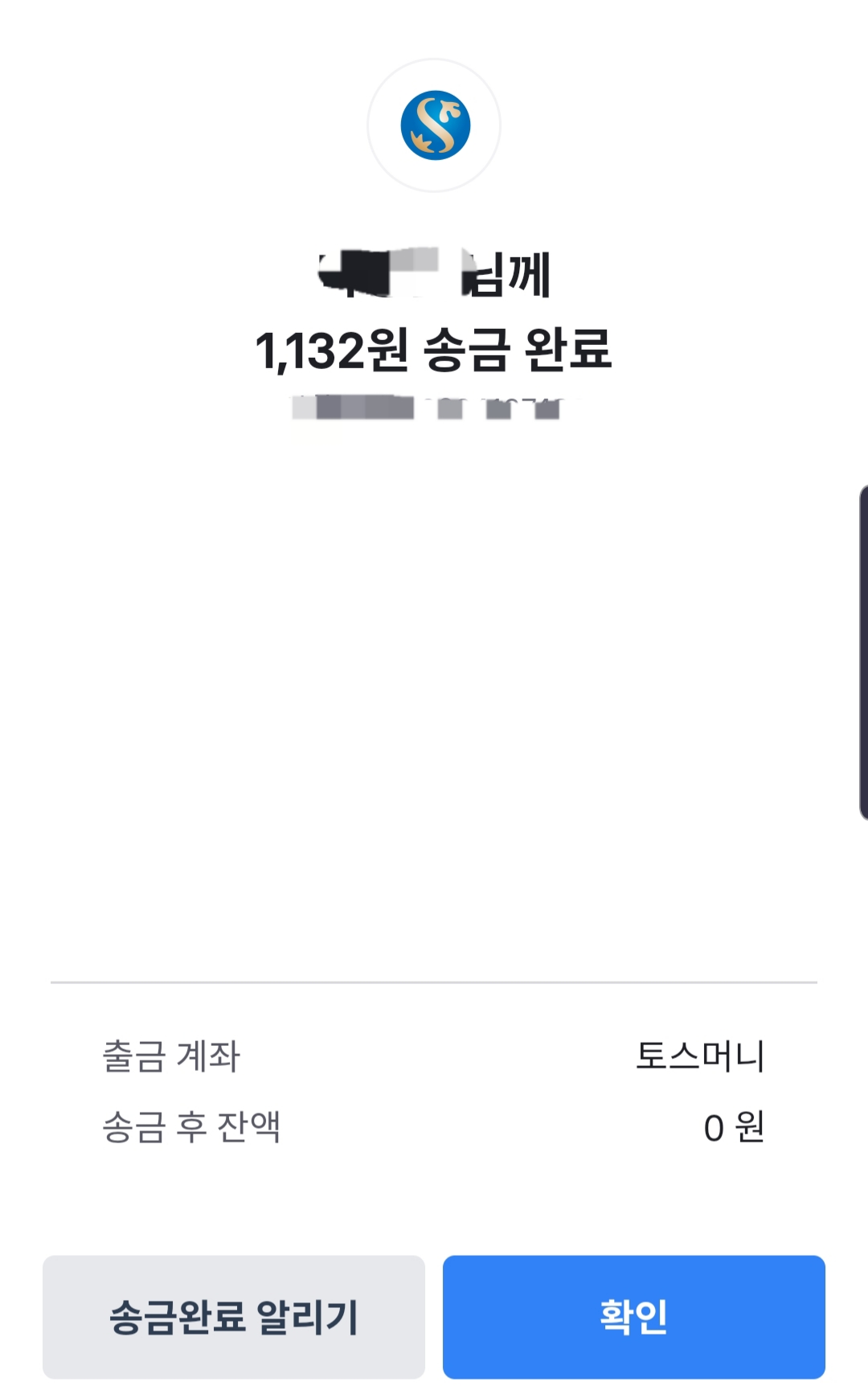 그러면 송금완료 됐습니다.