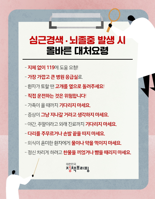 질병관리본부에서 말하는 심근경색, 뇌졸중 발생시 올바른 대처요령에 대해 살펴봅니다.