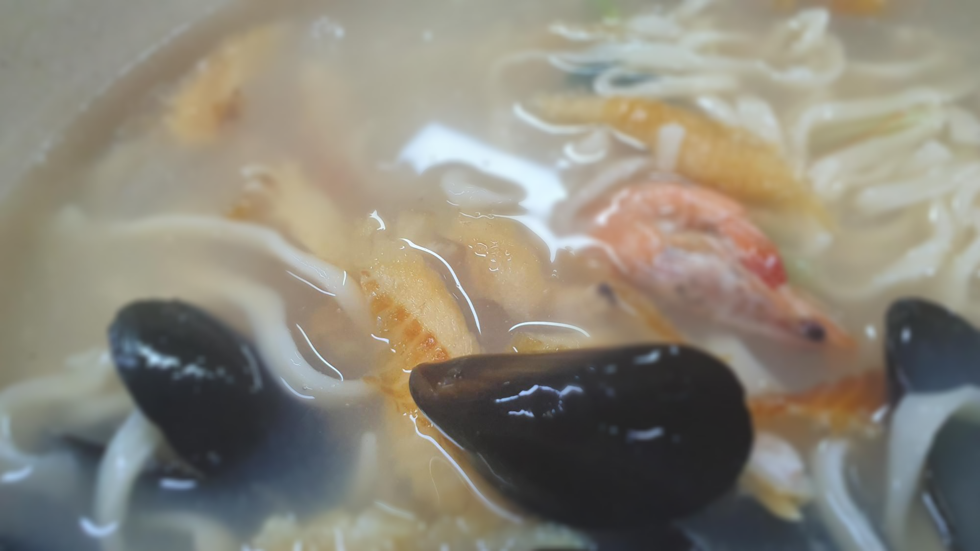 식당 관계자의 빠른 조치로 [아래 사진]과 같이 황태가 들어가게 되었네요. 조치방법은 "끊인 황태를 우리의 해물칼국수에 추가"하는 것으로 해결했답니다.