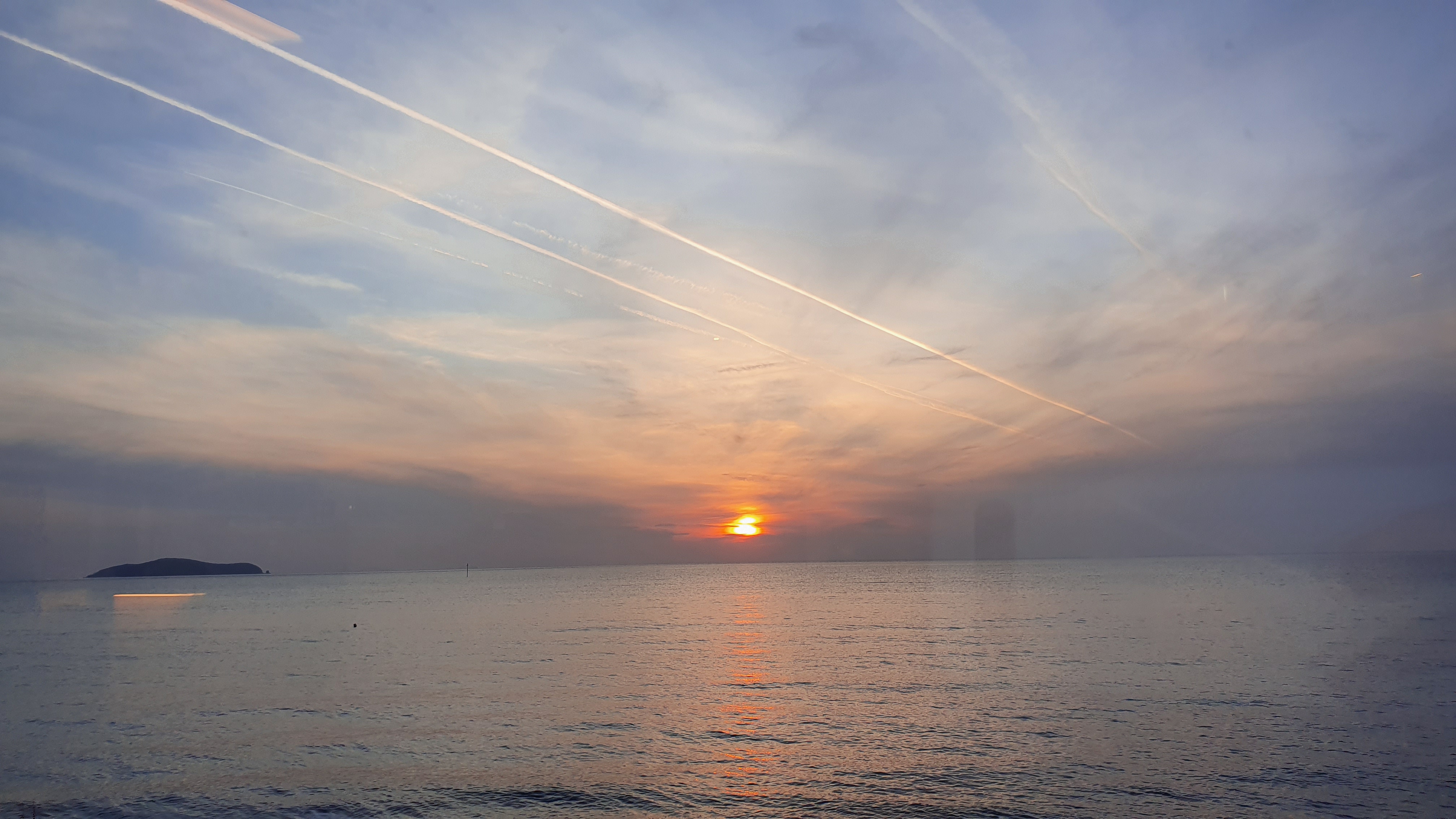 비행기 구름과 노을빛이 어우러져 그래도 볼만은 하지요...ㅋㅋㅋ