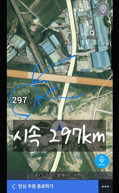 그런데 평택시 인근에서는 시속 297km로 달렸어요. 와우 정말 빠르지용..