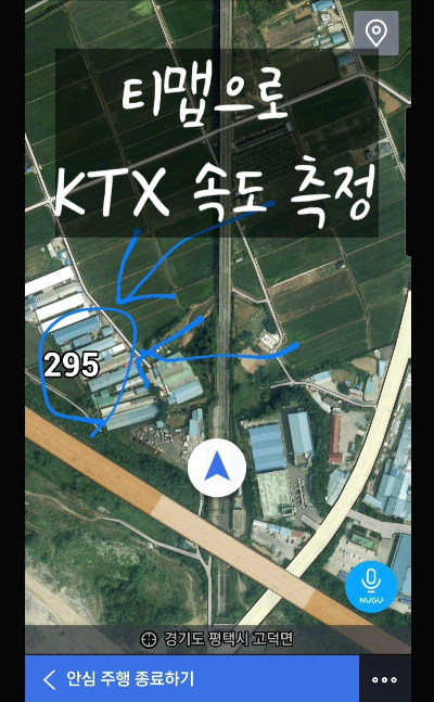 다음은 내비게이션용 앱 "티맵(Tmap)"으로 KTX 주행속도를 측정한 동영상입니다.