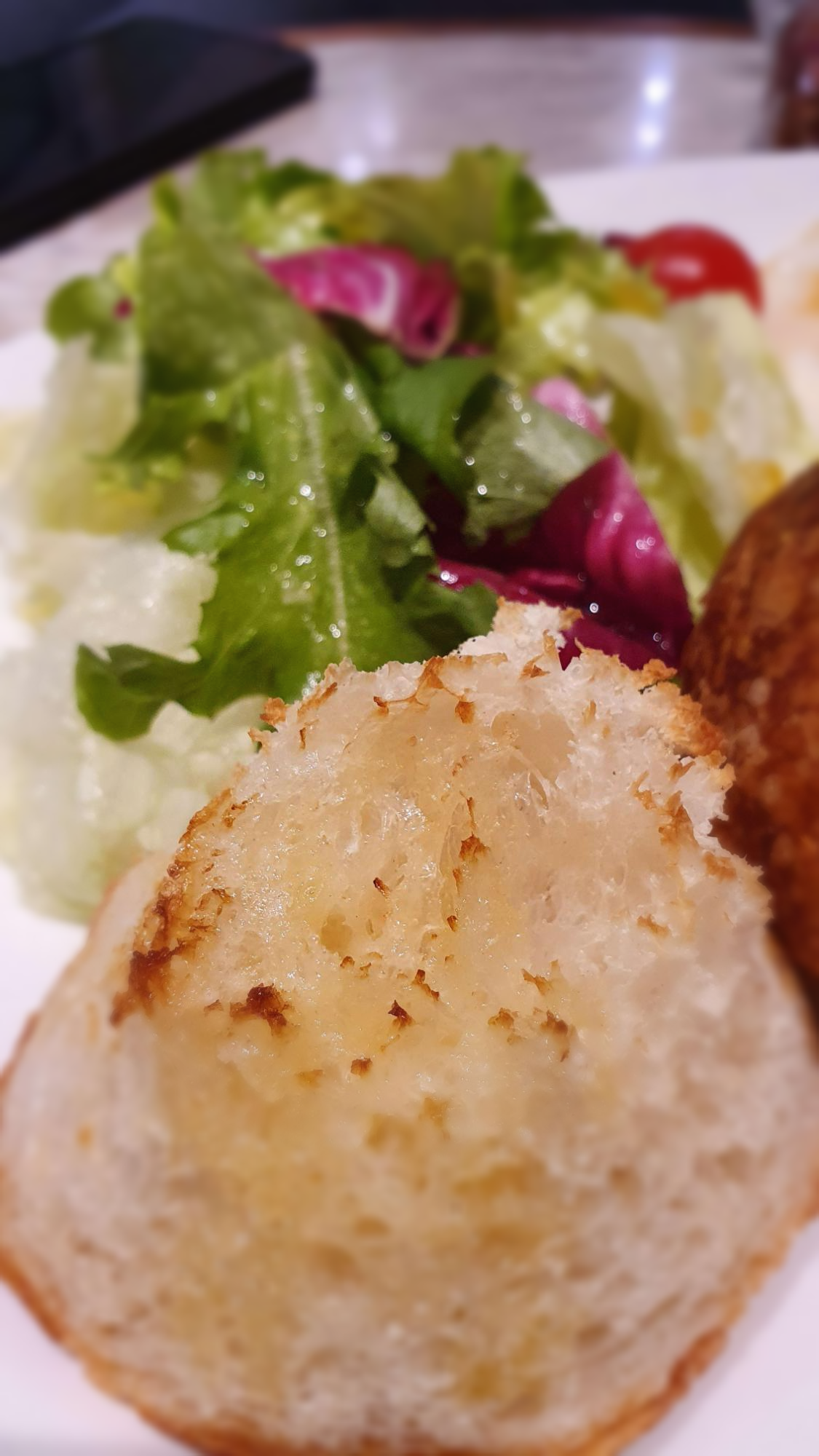 빵을 뜻하는 이탈리어어 "파네"안에 든 스프를 한 입 먹어 보는데요. 양송이 향이 입안에 퍼지면서 부드럽게 목으로 넘어가는 그 식감이 아주 인상적이었습니다. 스프를 다 먹고 난 뒤 이 파네를 조금씩 뜯어서 커피와 함께 맛나게 먹었네요.
