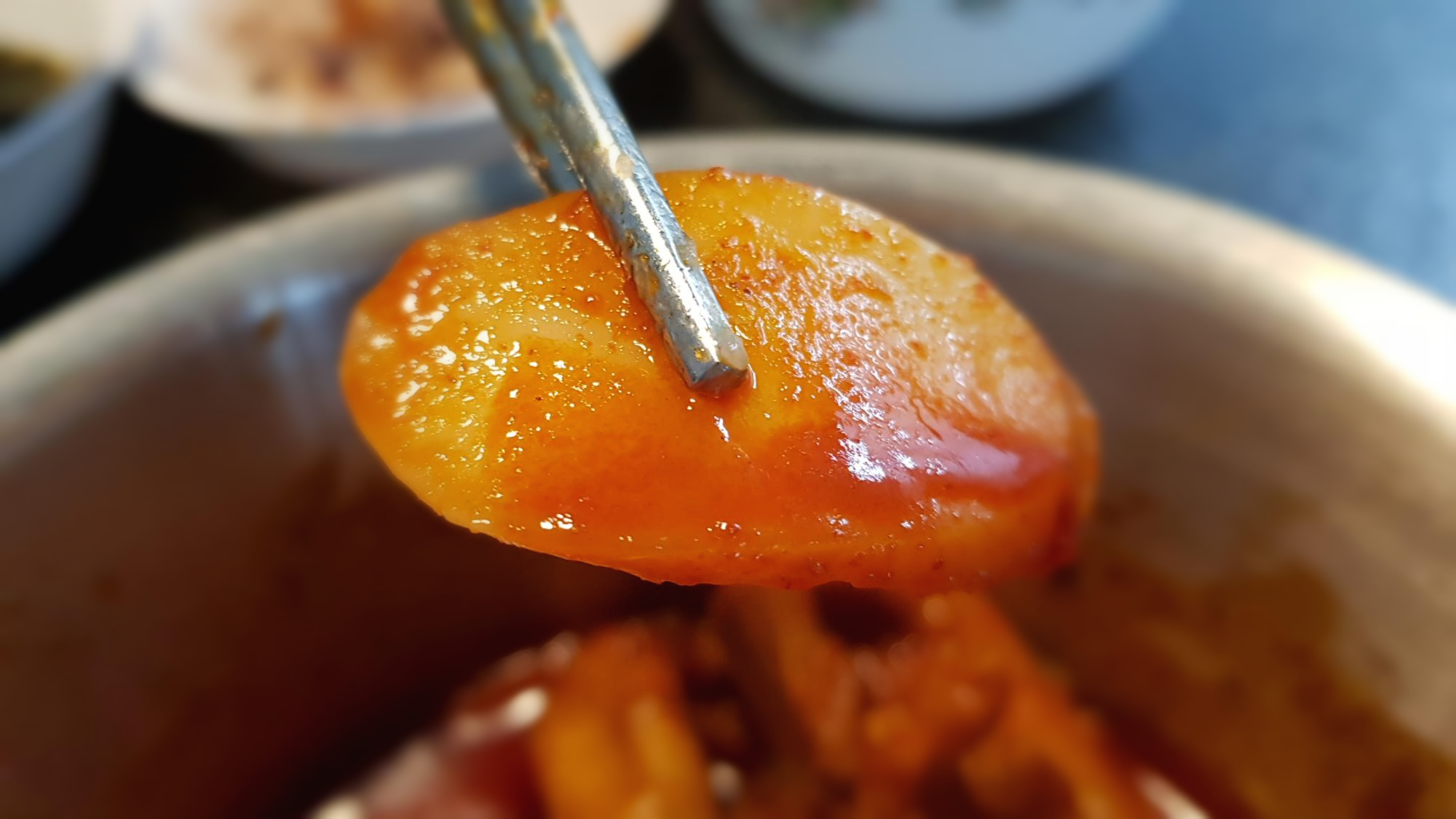 이 떡국떡의 매콤함도 닭발 못지않습니다.