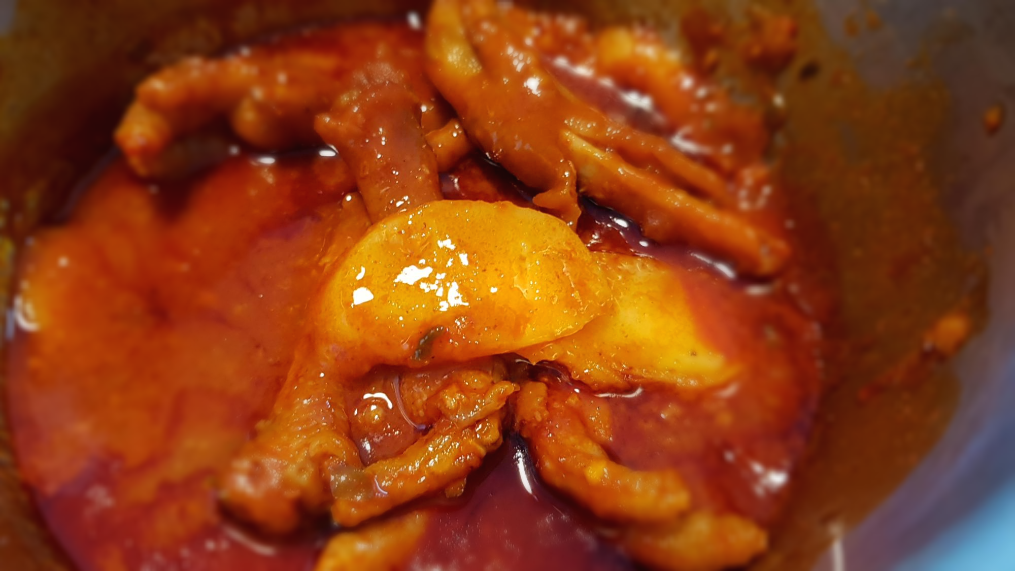 [아래사진]과 같이 불닭발이 온데간데 다 사라졌습니다. 입안에서는 거의 불이 난 상태이지요. 저는 사우나하듯 땀을 많이 흘렸답니다. 잘 됐지요. 뭐.. 코로나 19 영향으로 사우나도 한 달 이상을 못 갔으니까요... 배달음식 매콤 불닭발로 사우나 한번 멋지게 해결했습니다.