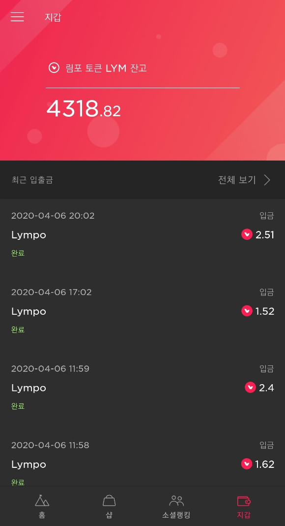 수입은 4월 7일 아침기준으로 약 4318 lym입니다. 지난 2월 포스팅에 그 당시 잔고가 얼마였는지 없어서 비교는 패스합니다.