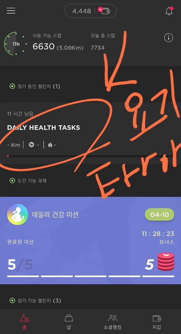 하지만 [아래사진]에서 한글로 된 "데일리건강미션"을 클릭하면 정상적으로 동작합니다.
