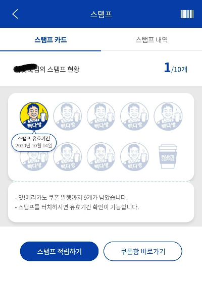 빽다방 스탬프가 다 사라졌어요. 스탬프와 쿠폰 유효기간 꼭 확인하세요..