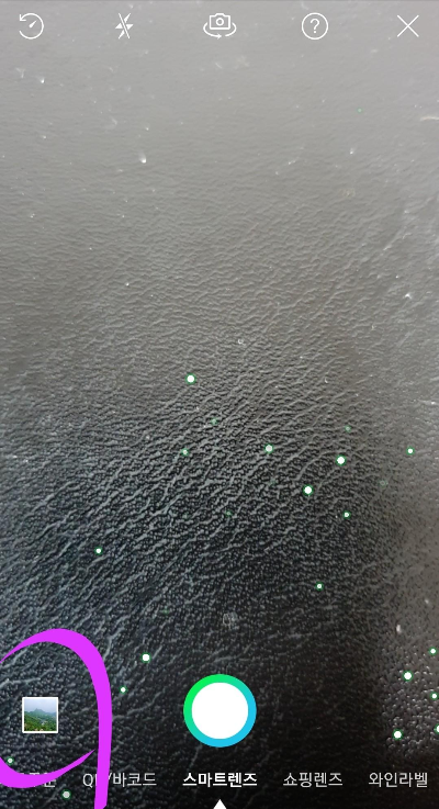 이 또한 아주 간단합니다. [아래 사진]과 같이 "스마트렌즈"모드에서 화면 왼쪽 하단에 표기한 "사진"을 클릭합니다. 이것을 클릭하면 화면은 안드로이드 스마트폰 기준으로 사진들이 모여 있는 "갤러리"로 이동합니다.