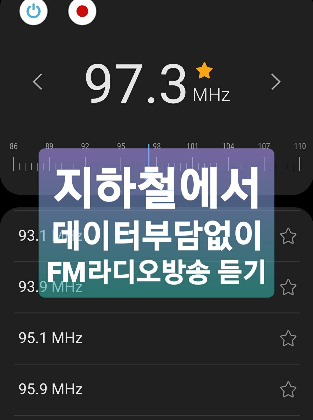자 그럼 지금부터 지하철에서 데이터 부담없이 실시간 FM 라디오 한번 들어 보도록 하지요.