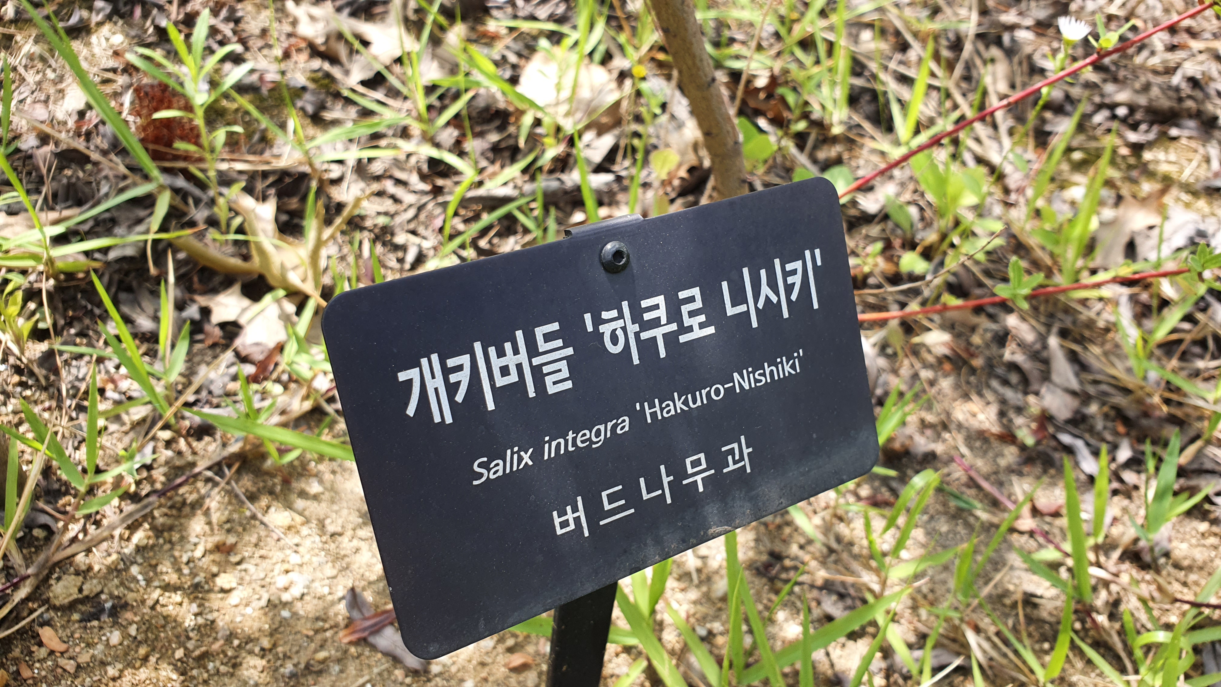서울식물원 측에서는 위 식물이름이 "개키버들 '하쿠로 니시키"라고 [아래 사진]과 같이 표시했더군요.