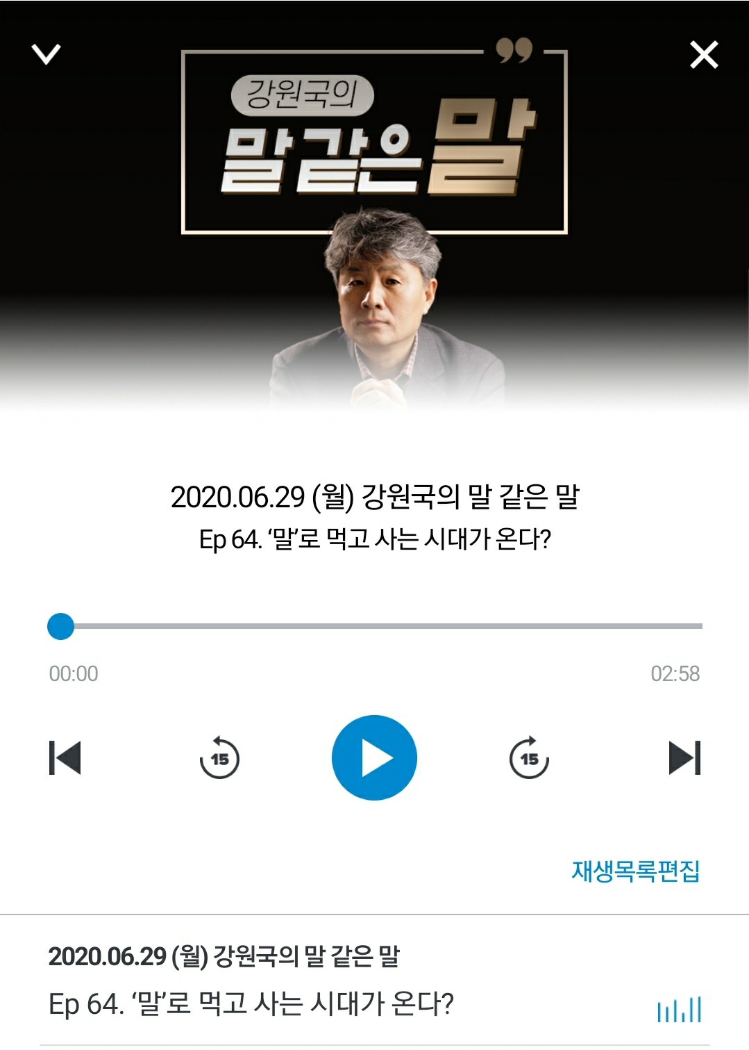 [아래링크]는 "말"로 먹고사는 시대가 온다?" 오디오 클립 링크입니다. 이곳에서 강원국 님의 목소리로 직접 들어 보시기 바랍니다.