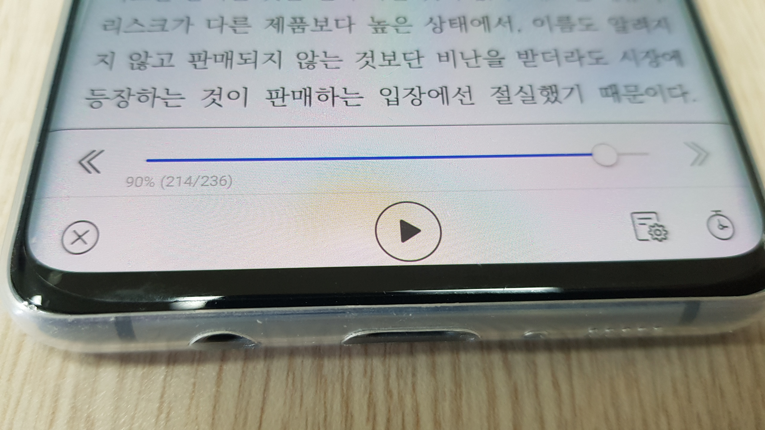 하단에 있는 듣기 모드에서의 독서 진행률은읽기 모드와 동일하게 적용됩니다.