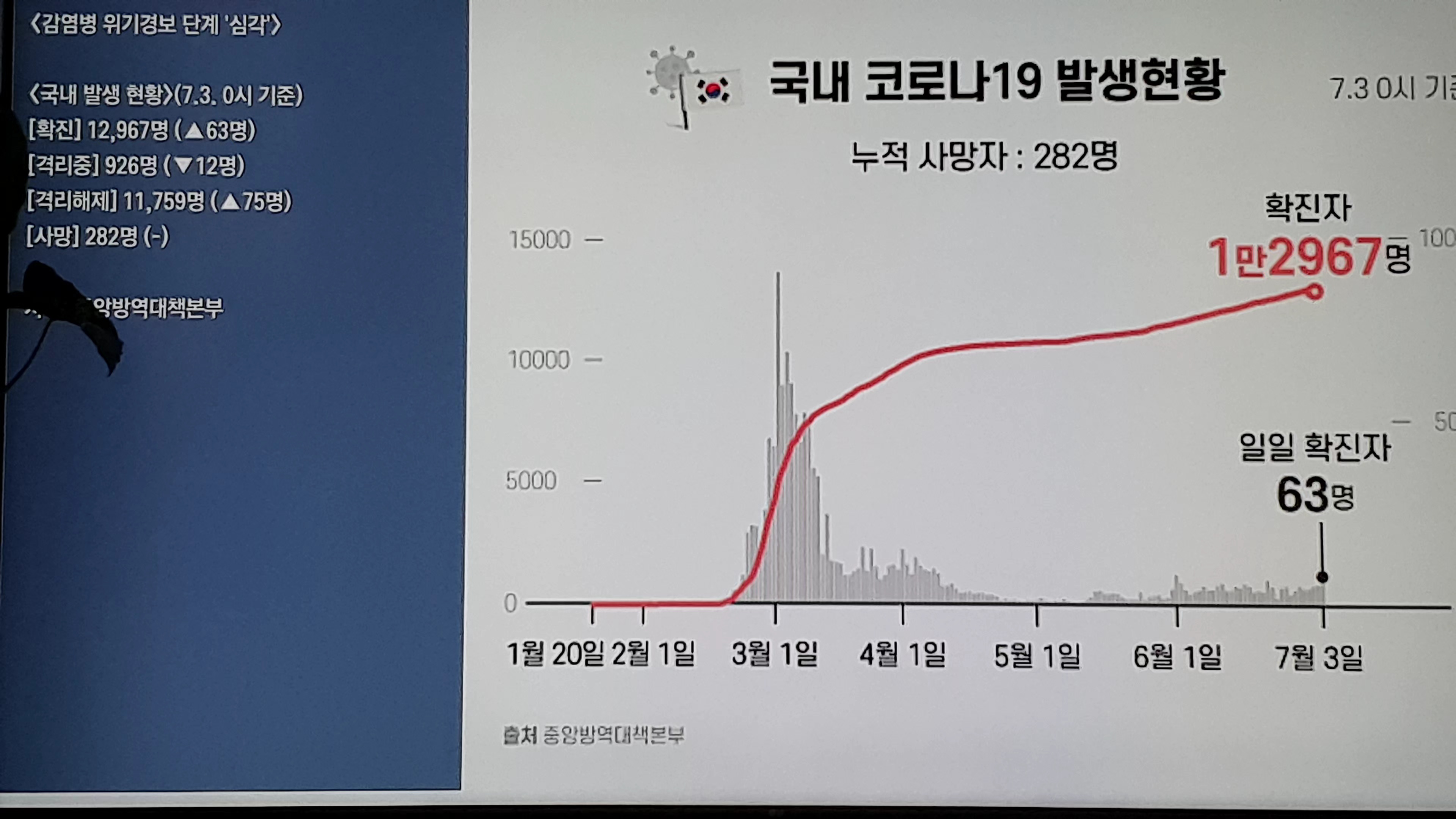 마지막 네 번째 서비스로 "코로나 19현황"이 그래픽으로 서비스 되고 있었 습니다. 코로나19 발생현황은 포털, 실시간 뉴스 등에서 너무 자주 봐서 그런지 이 페이지에 오래 머물기엔 콘텐츠가 다소 역동성이 없어 보여 이 화면 이탈률이 꽤 많아 보일 것으로 생각되더군요.