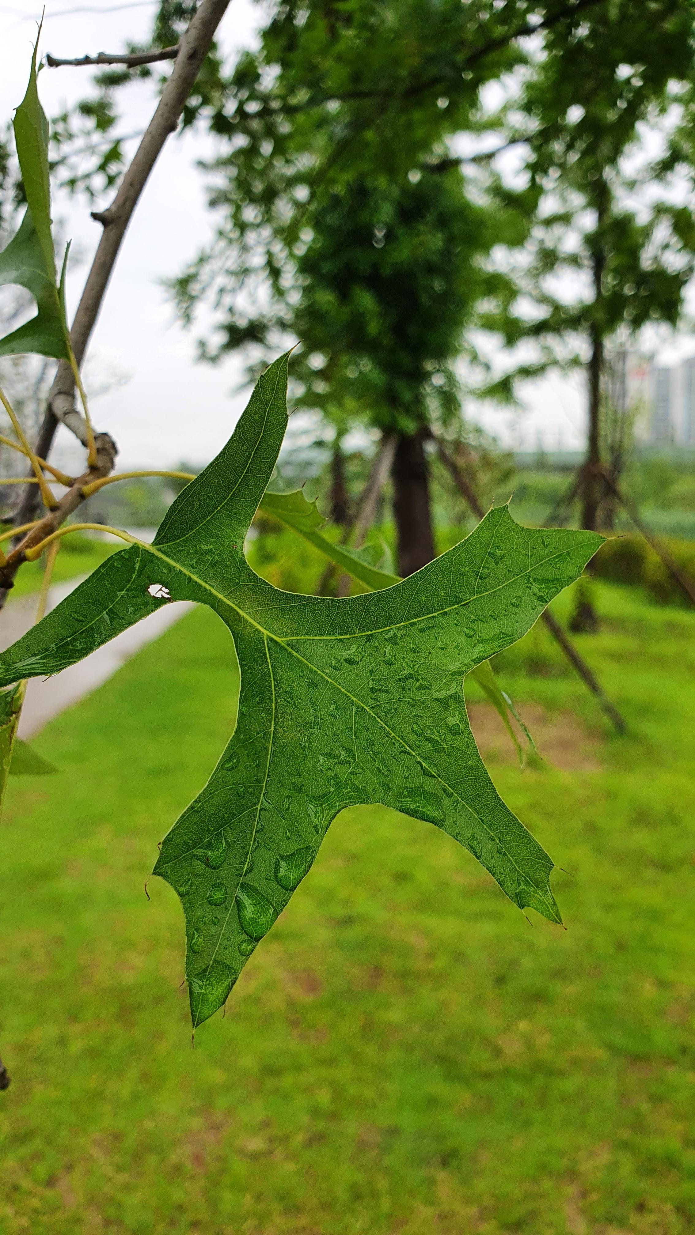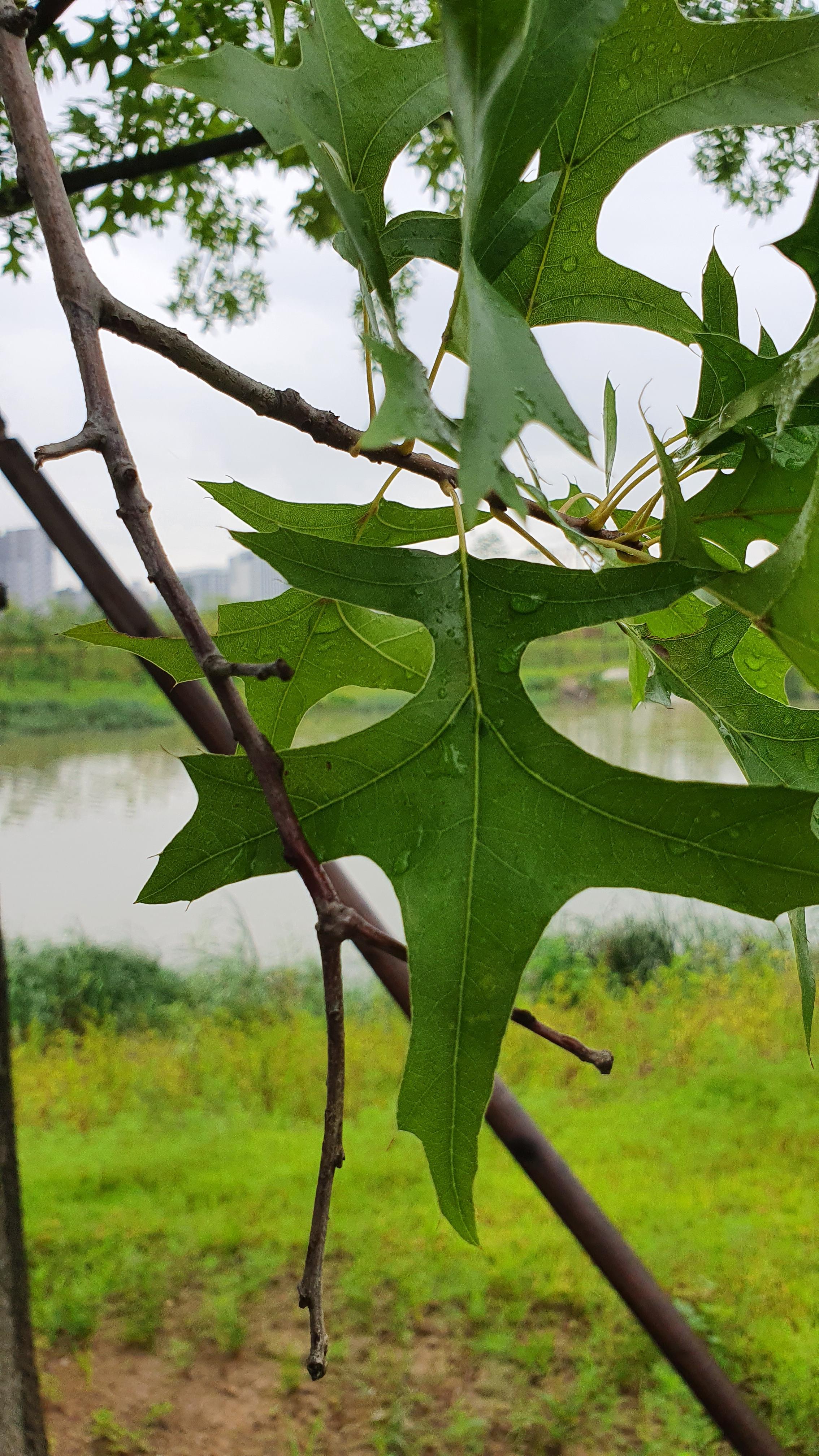 "꽃은 4~5월에 연녹색의 꽃이 피며, 아래로 늘어져 달리며, 꽃잎이 없어 눈에 띄지 않는다."라고 합니다. 그리고 대왕참나무라고 불린 이유는 키가 크다하여 그렇게 불린다고 하네요. 가느다란 잔 가지가 줄기와 큰 가지에 핀처럼 튀어나와 'pin oak(핀오크)'라고도 불립니다. 잎 뒷면은 광택이 나는 녹색이며, 미세한 흰색의 털이 나 있습니다. 잎은 어긋 나기하며, 가장자리에 깊게 파인 톱니가 있습니다. 열매/단풍 열매는 10년 이상 자란 나무에서 열리는데 9월에 도토리가 열립니다. 홍색의 가을 단풍이 아름답다.