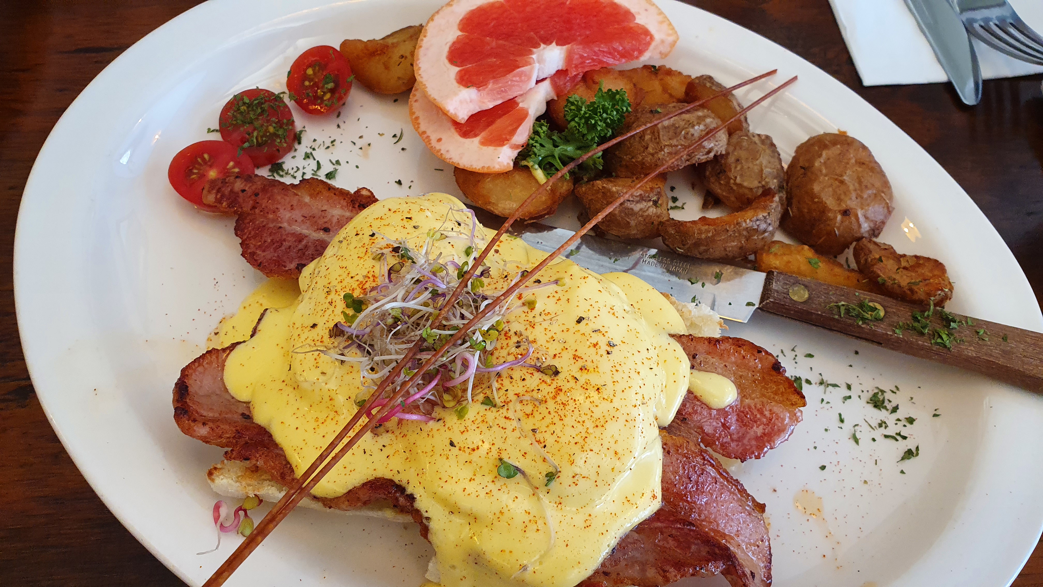 [아래사진]은 울 마눌님과 딸이 주문한 베이컨 에그 베네딕트 입니다. 아제 감성으론 ""피치 스프링스"라는 북미 느낌이 살려면 큼지막한 방울 토마토와 감자 등이 사이드를 자리하고 있어야 된다."라고 생각하는게 그것이 아닌점이 좀 아쉬웠습니다.