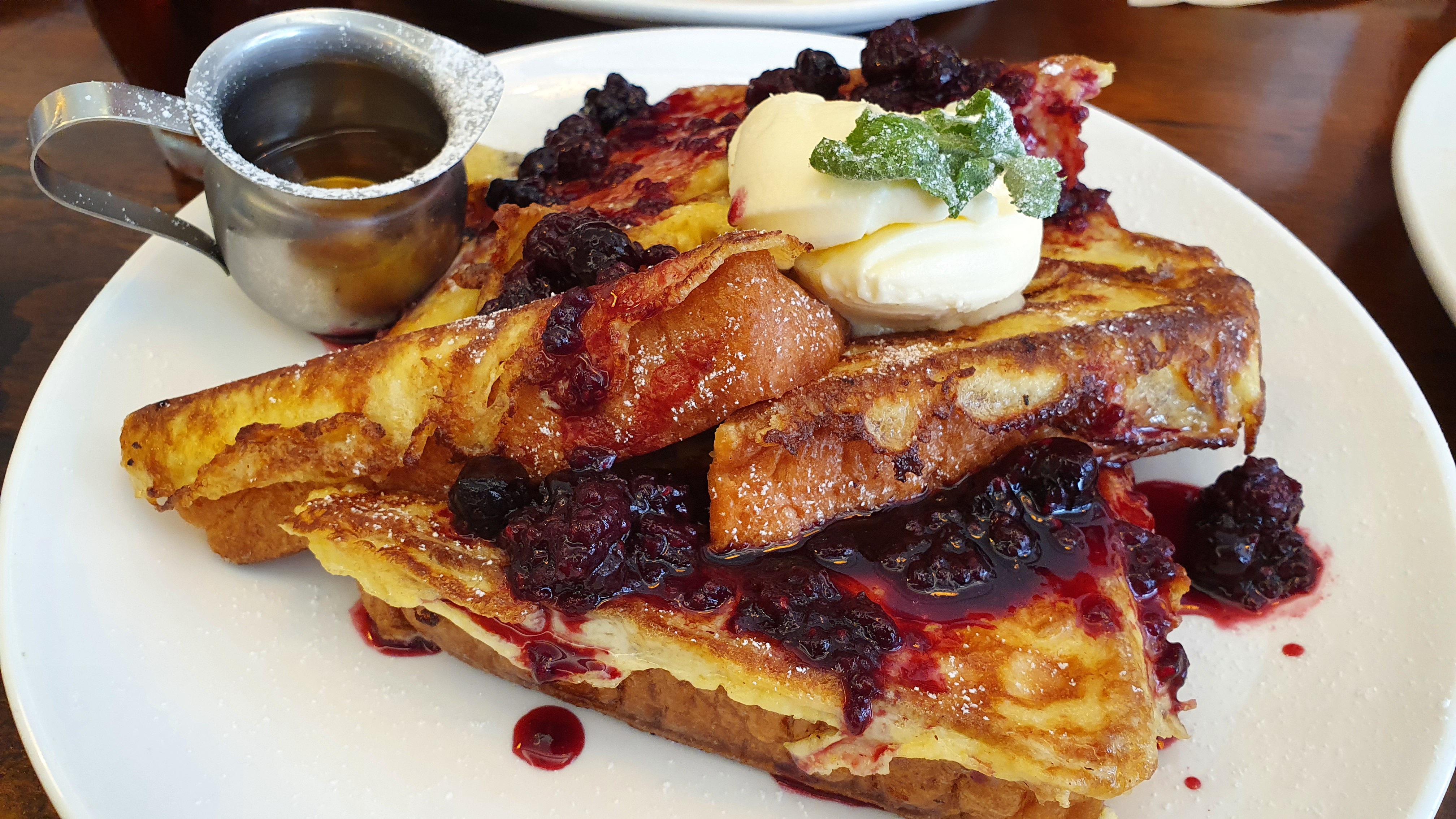 지난해인가 태국 모 숙소에서 프렌치 토스트를 참 맛있게 먹은 후로 이런 브런치 식당에 오면 울 딸은 저를 위해 말 안해도 "프렌치 토스트"를 주문합니다. 이 날도 마찬가지였지요. [아래사진]이 토스트 전경입니다.