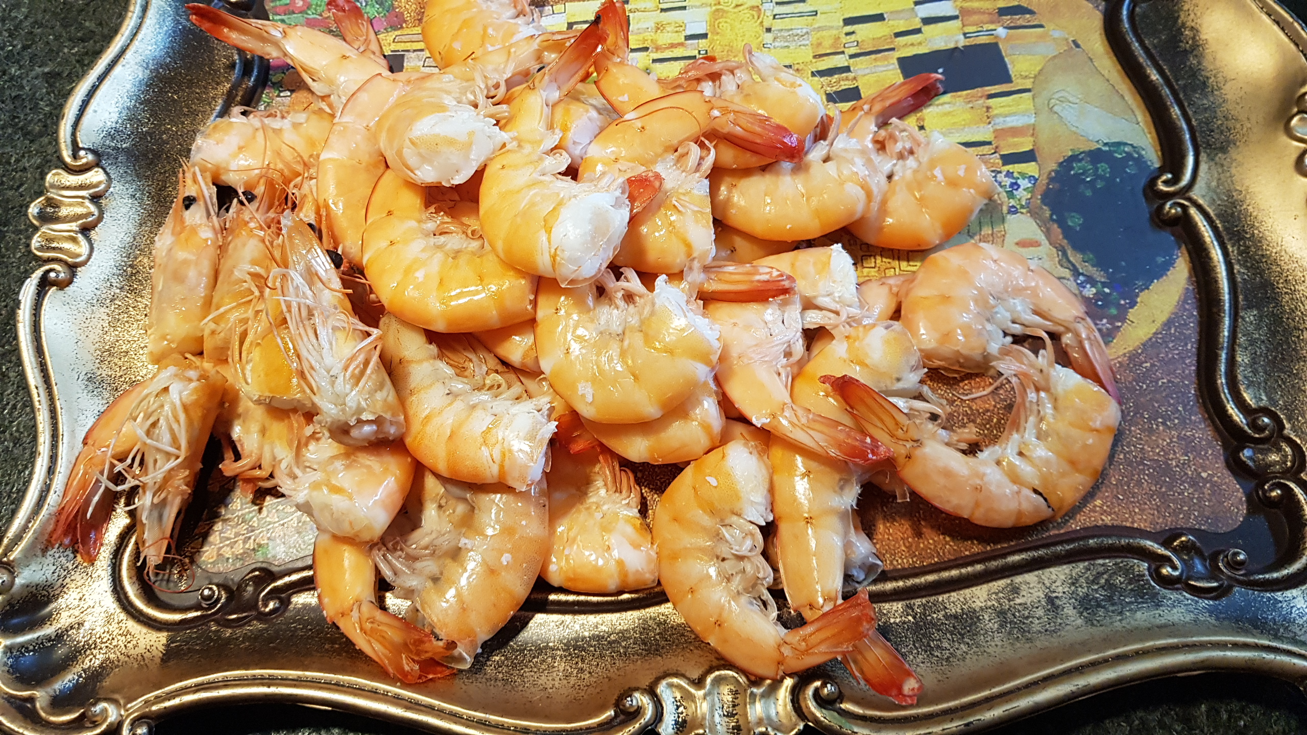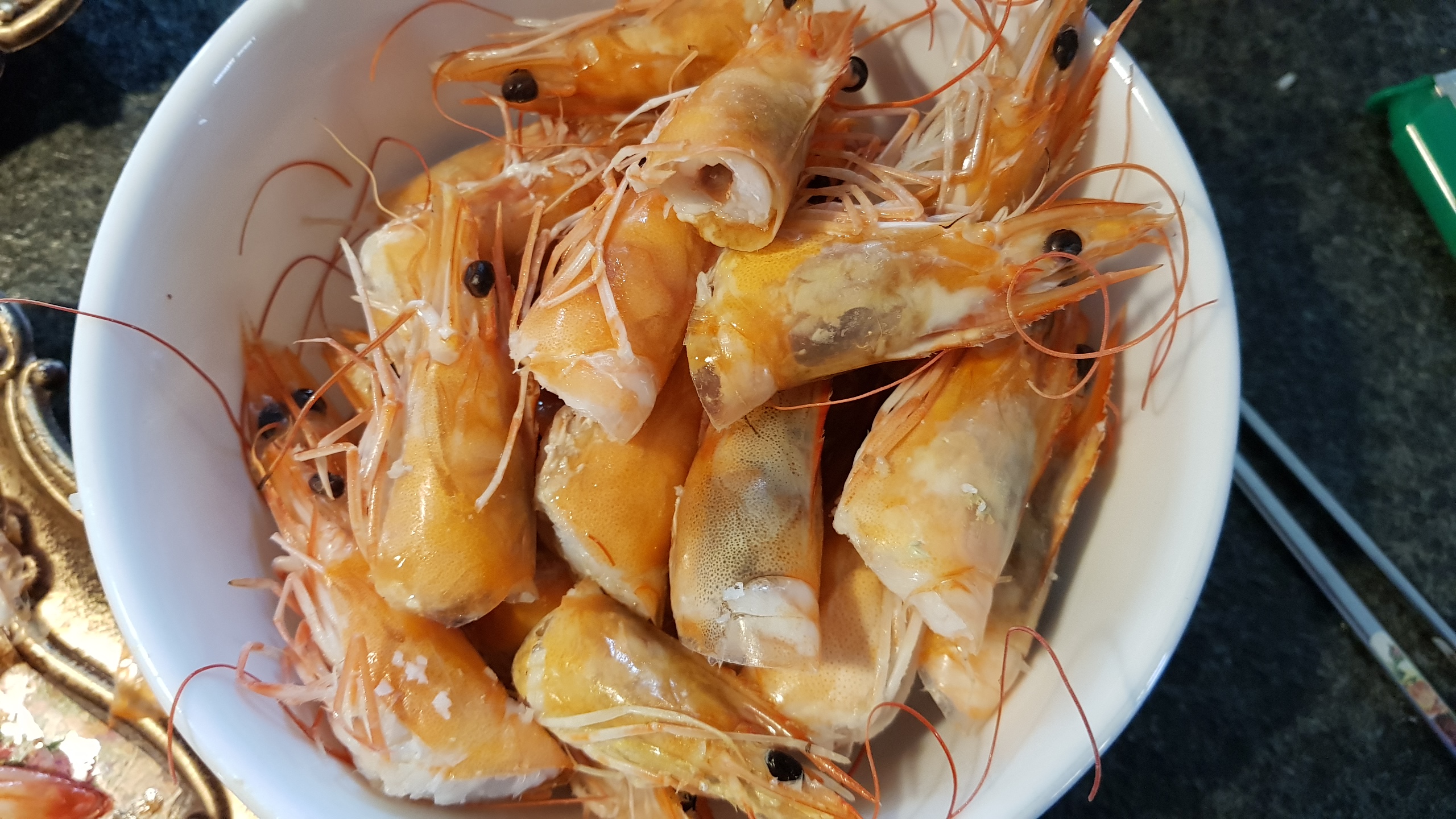[아래사진]은 새우 소금구이로 익은 것을 머리와 몸통 분리한 사진입니다.