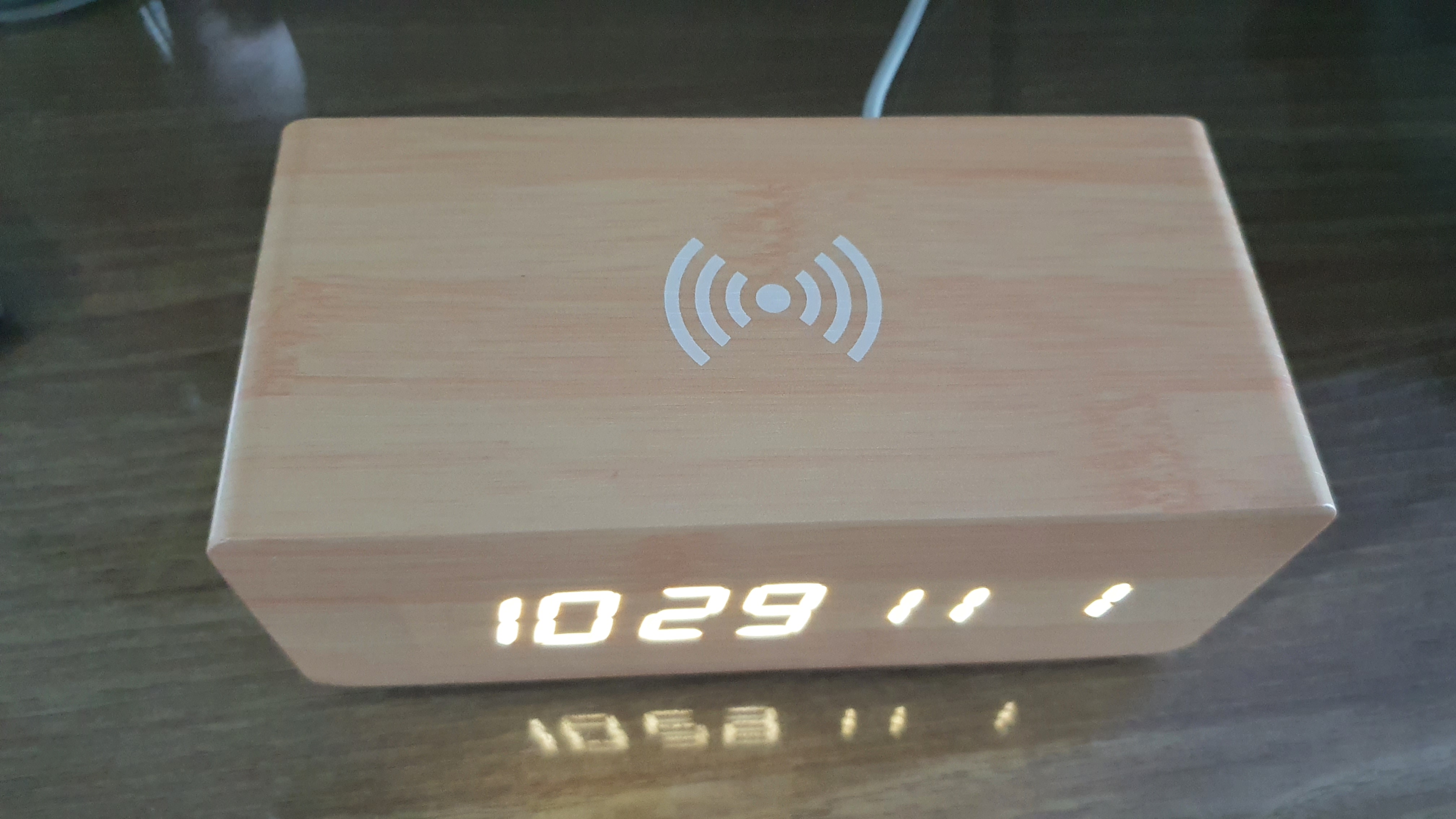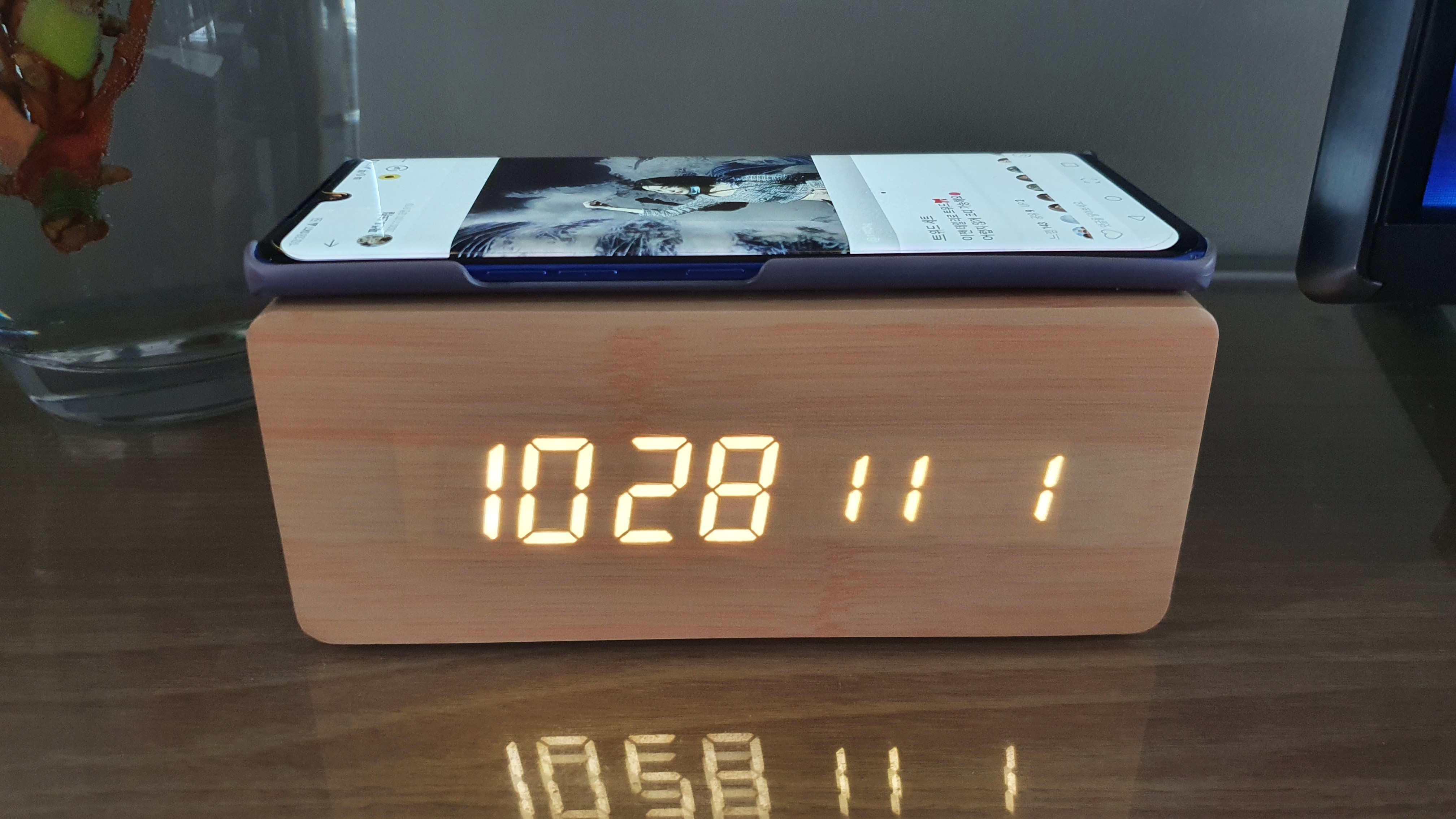 플라이토 우드 무선충전 데이트 LED 탁상시계를 하나 장만했어요..