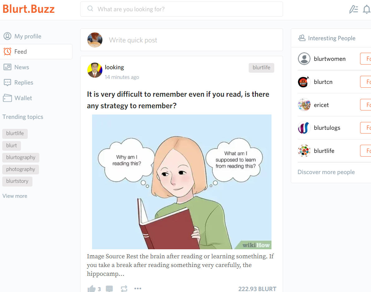 Blurt is a social media platform where everyone gets paid for creating and curating content. It leverages a robust digital points system (Blurt) for digital rewards.