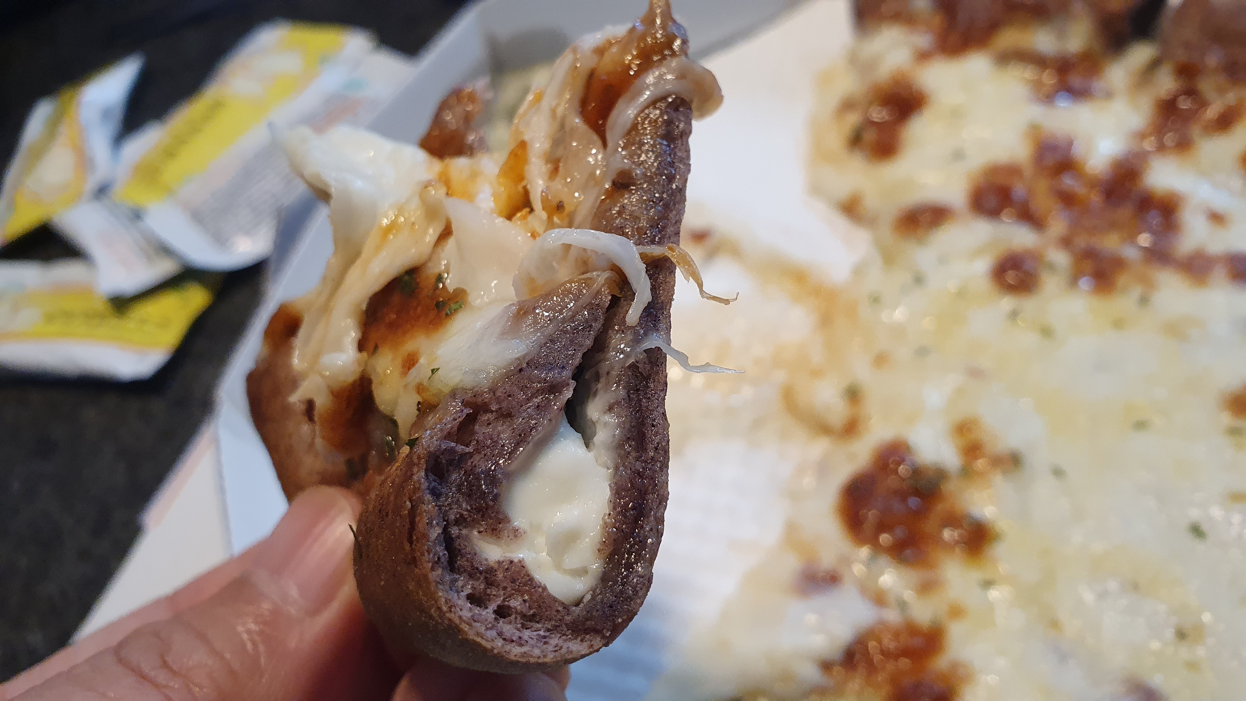 [아래 사진]은 도우 안에 있는 크림치즈입니다. 치즈 식감 때문에 목 넘기기가 아쉽더군요.