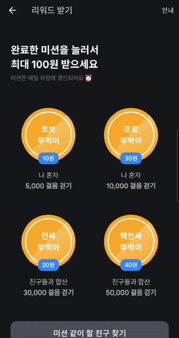 하루 최대 100원, 한 달 최대 3000원 되는 깨알 같은 금액이지요. 하지만 하루 1만보 걸어서 최대 100원 리워드는 건강으로 따진다면 금액으로 환산 불가지요.